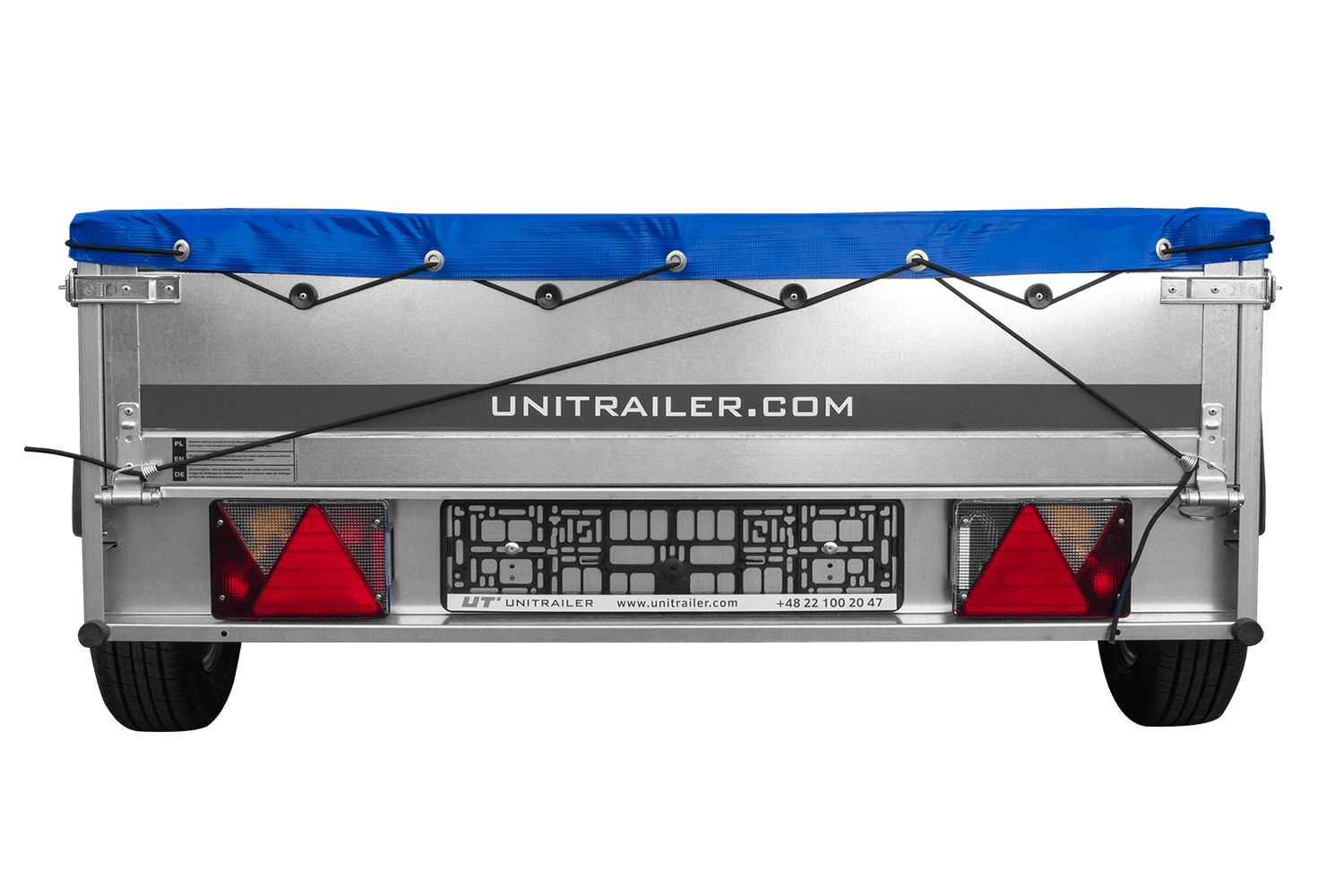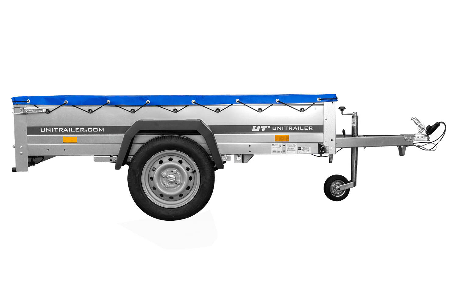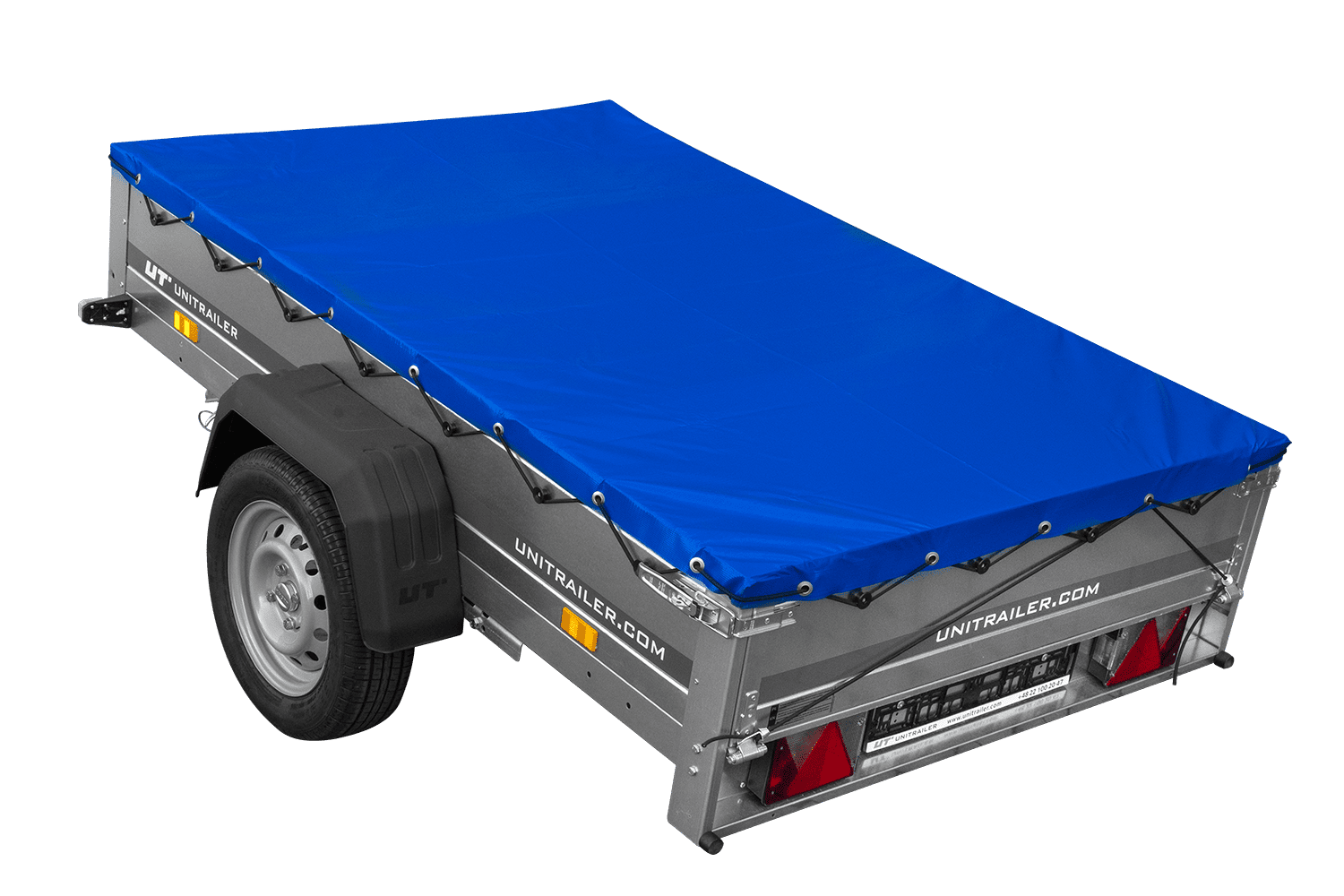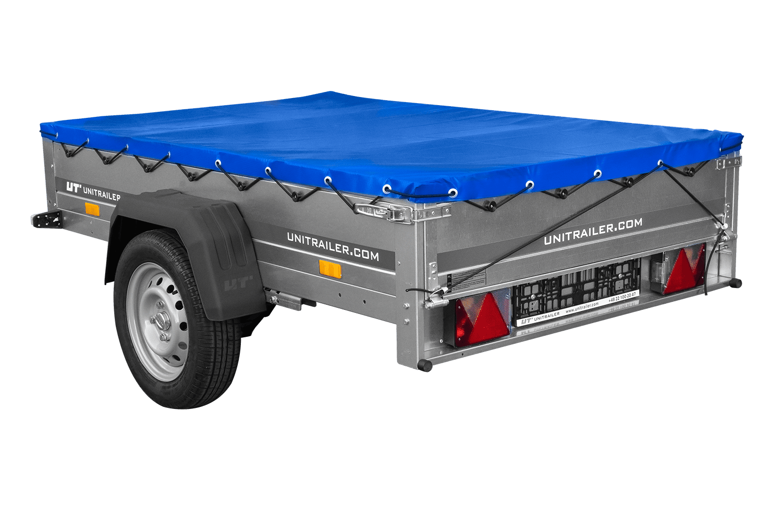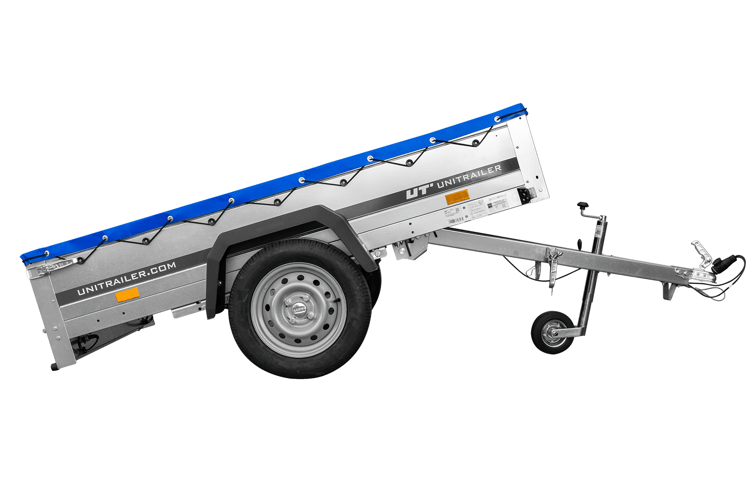 Přívěs za auto na pružinách 200x125 UNITRAILER GARDEN 201/R KIPP s rámem H-0 a modrým krytem