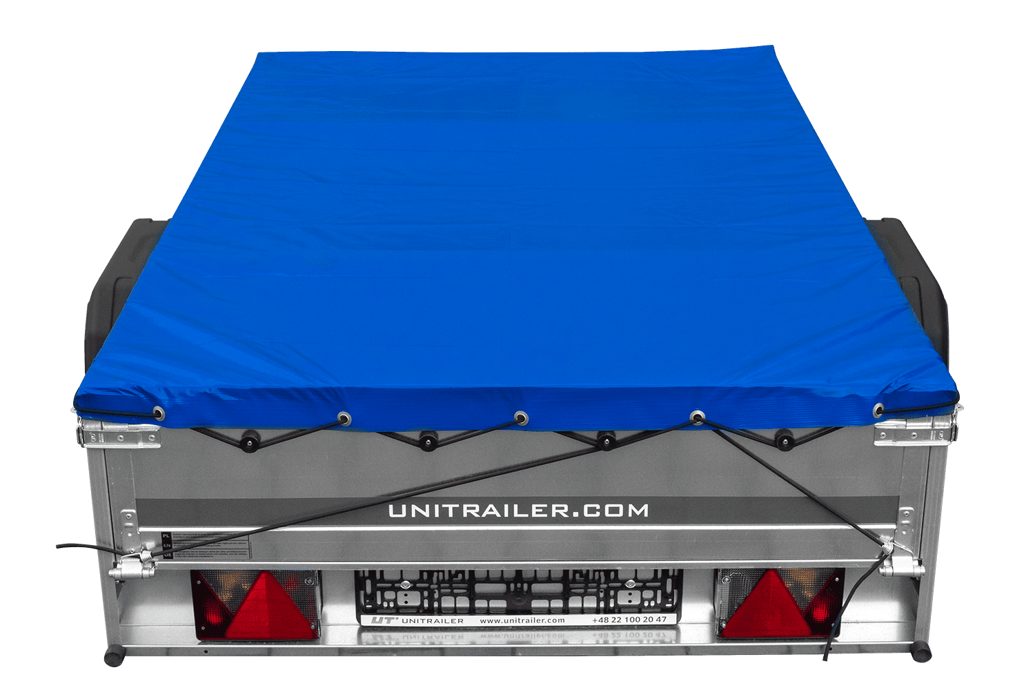 Sada obsahuje rám H-0 s modrým krytem , který účinně chrání přepravovaný náklad před deštěm, sněhem a nečistotami. Díky robustní konstrukci a flexibilnímu upevnění zůstává kryt dokonale napnutý i při vyšších rychlostech a samotný rám zabraňuje jeho zhroucení pod tíhou vody nebo sněhu. Toto praktické a estetické řešení zvyšuje funkčnost přívěsu a zaručuje klid během každé cesty. Kryt je vyroben z pevného, nepromokavého PVC materiálu , odolného vůči roztržení a povětrnostním vlivům. Flexibilní šňůra s háčky umožňuje rychlé a pevné utažení, což zajišťuje stabilitu.