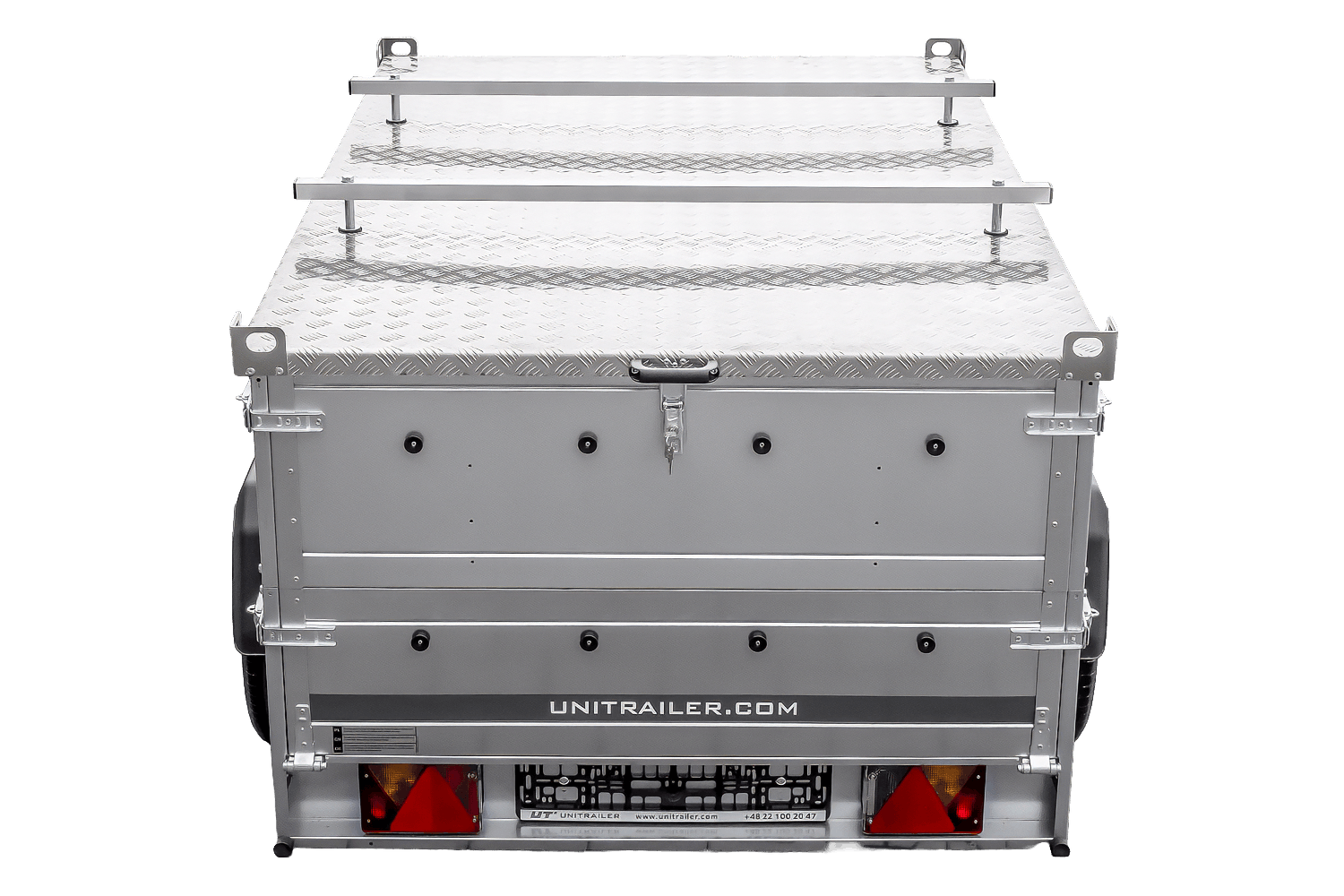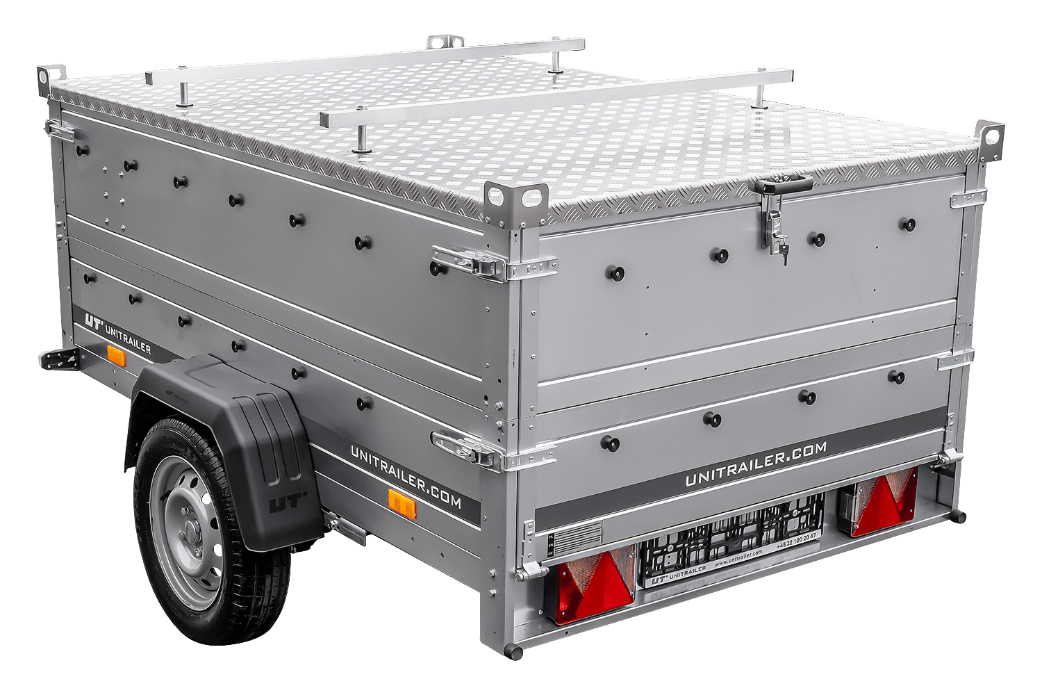 Sada obsahuje boční panely BIS , které zvětšují výšku nákladového prostoru a umožňují tak větší objem nákladu. Další výhodou je hliníkový kryt vyrobený z lehkého, ale extrémně odolného hliníku. Kryt je po stranách vyztužen, což zajišťuje strukturální tuhost, a díky nízké hmotnosti (cca 50 kg) neohrožuje nosnost přívěsu. Hliníkový kryt je vybaven plynovými vzpěrami , které umožňují snadné a plynulé otevírání a zavírání bez nutnosti použití síly. Ty drží kryt v otevřené poloze, což výrazně zjednodušuje nakládku a vykládku. Kryt je také vybaven zámkem na klíč , který chrání náklad před krádeží. Horní plocha je vybavena přepravními lištami , které umožňují připevnění dalšího střešního nosiče, boxu nebo nosiče kol, čímž se zvyšuje funkčnost přívěsu a umožňuje ještě větší přepravní kapacitu.