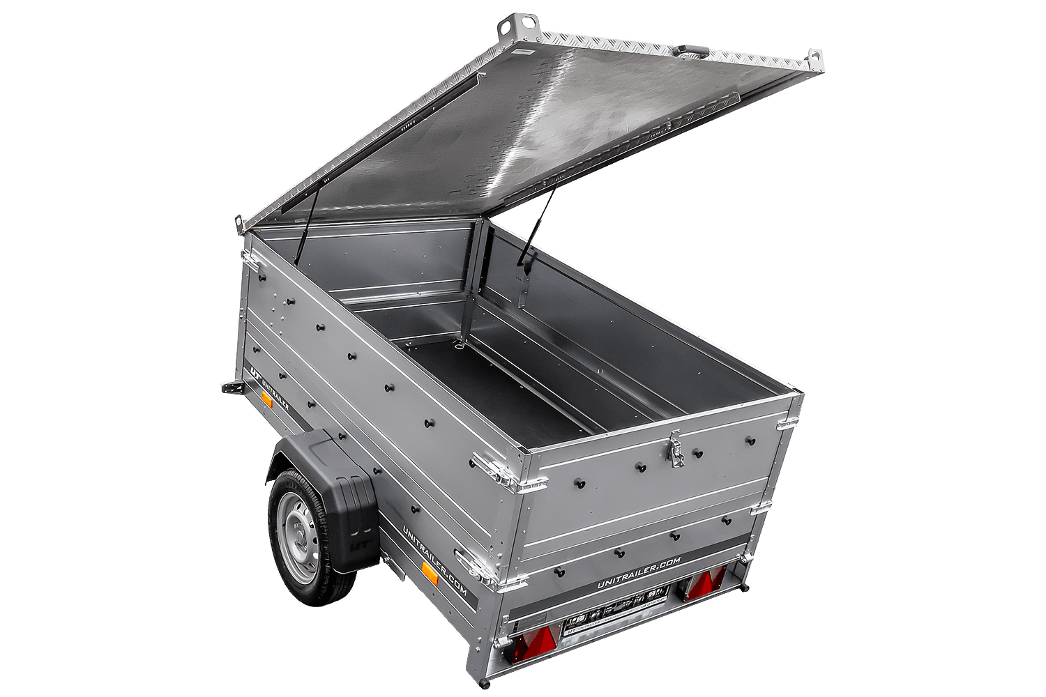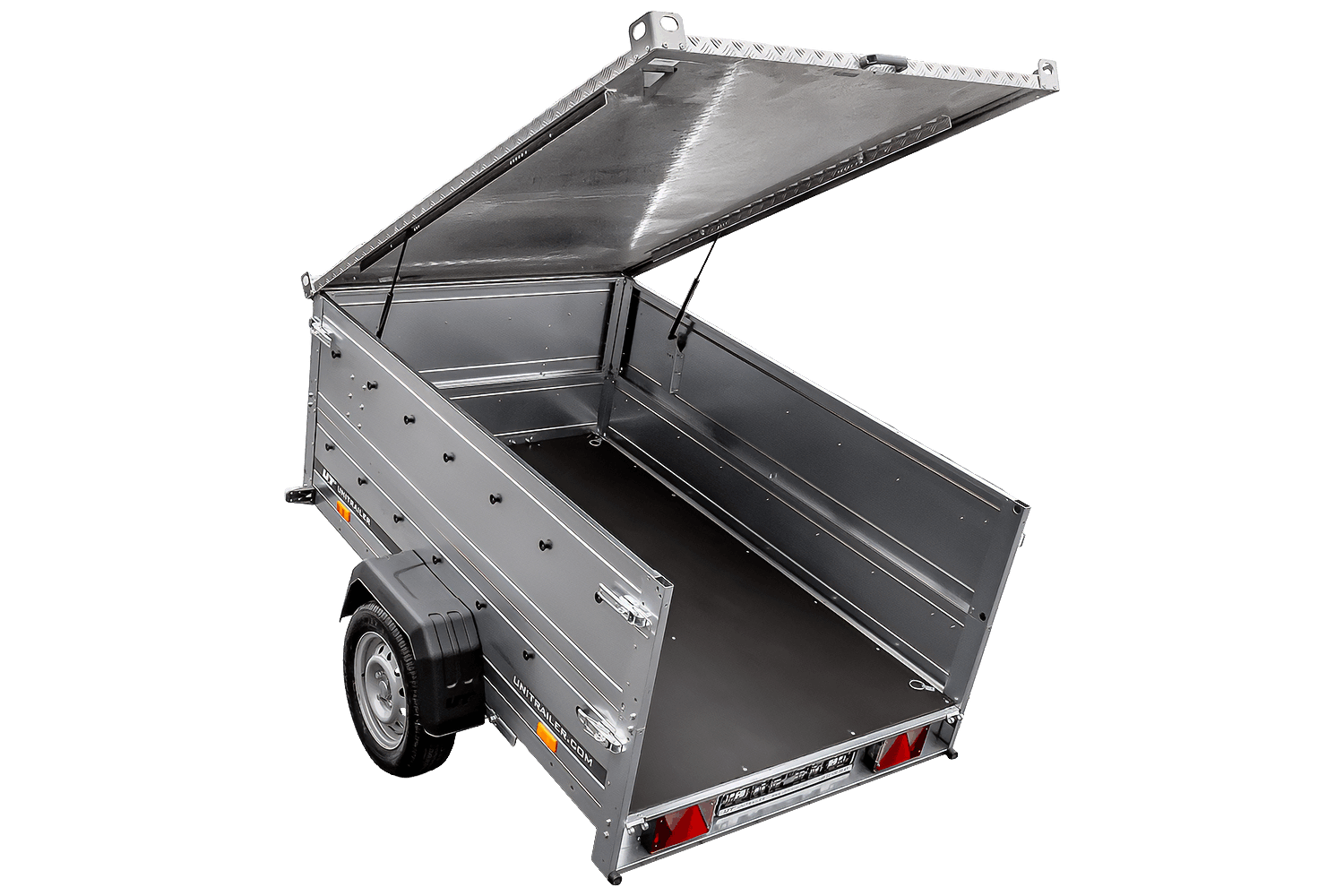 Jednonápravový přívěs na pružinách 230x125 UNITRAILER GARDEN 230/R KIPP s bočnicemi BIS a hliníkovou plachtou
