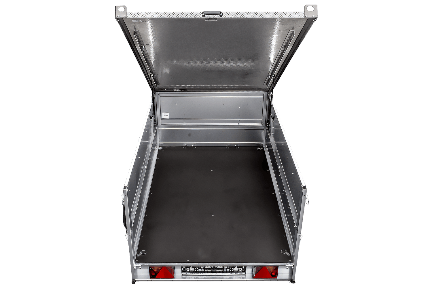 Nákladní plocha o rozměrech 230x125 cm poskytuje optimální prostor pro přepravu nejrůznějších materiálů – od zahradní techniky a nábytku až po stavební materiály. Celá konstrukce je vyrobena z žárově pozinkované oceli , odolné vůči korozi a nepříznivým povětrnostním podmínkám. Podlaha z 9mm voděodolné překližky s protiskluzovým povrchem zajišťuje stabilitu a bezpečnost přepravovaného nákladu.