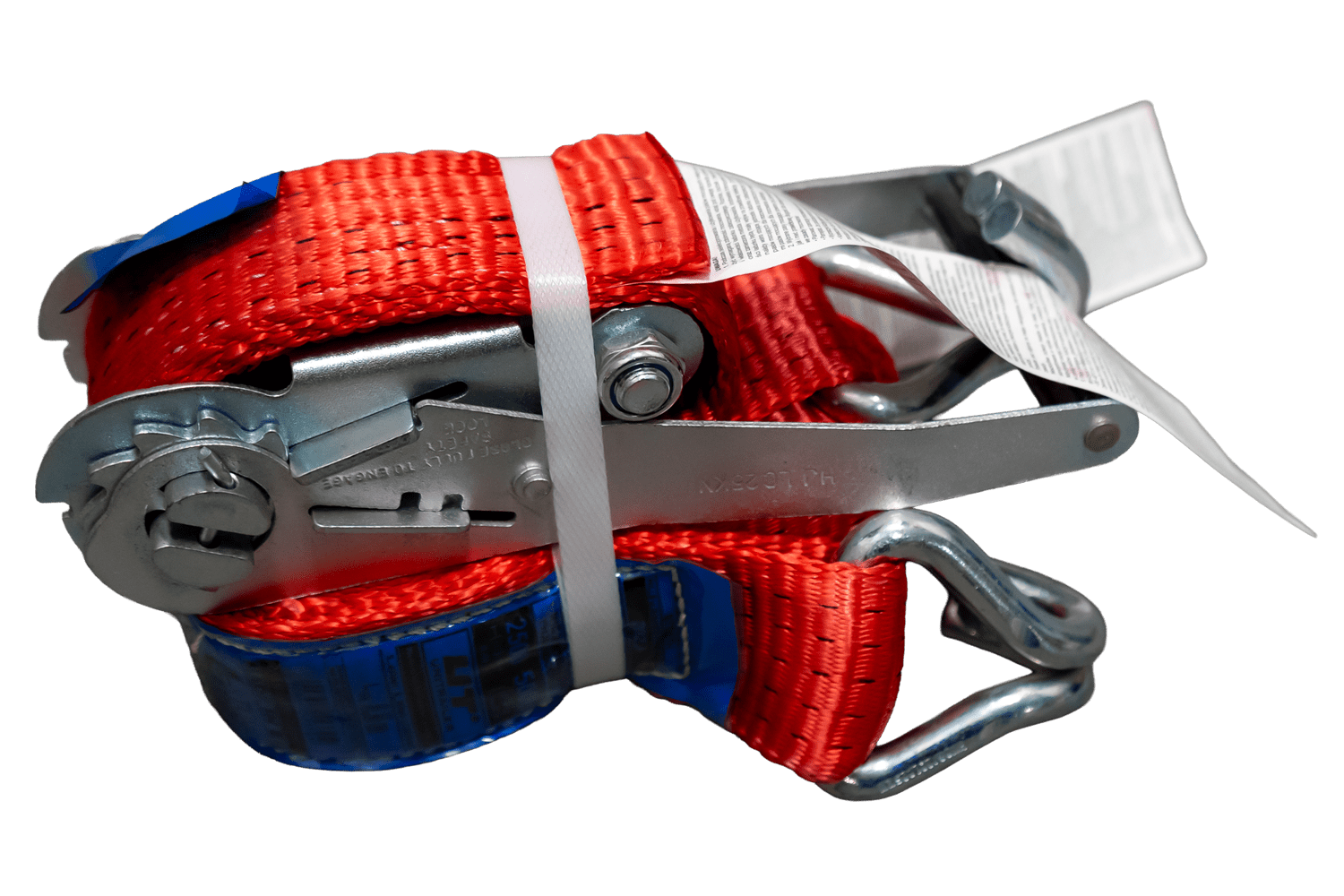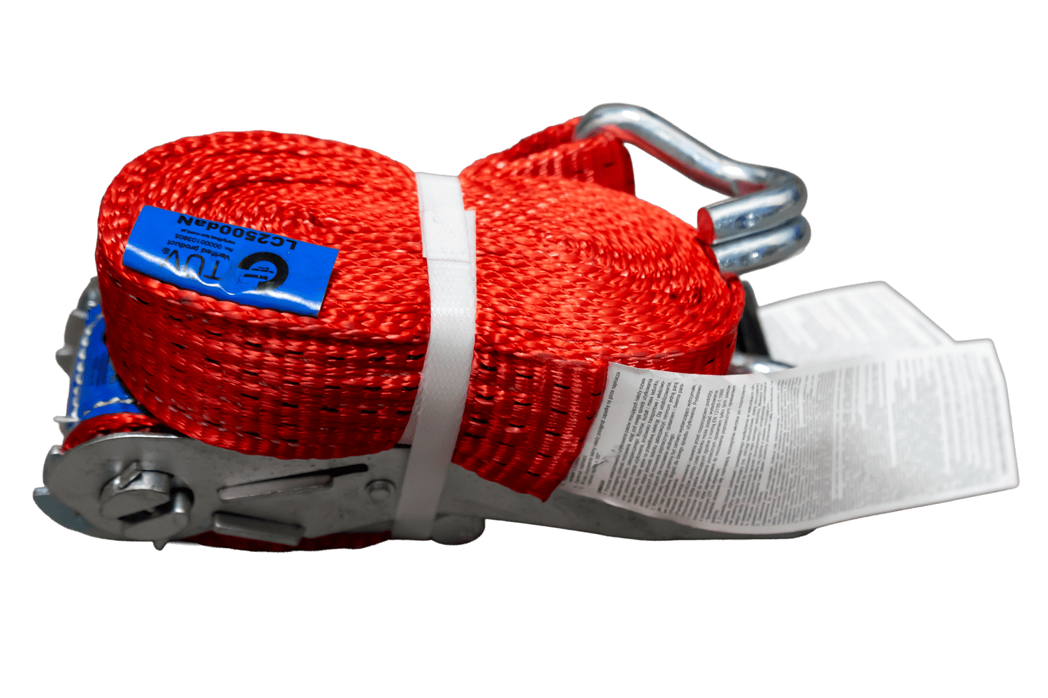 Červený upevňovací popruh HILLS s ráčnou se skládá ze dvou částí: kratší části s ráčnou a hákem a delší části s popruhem a hákem. Celková délka popruhu včetně popruhu a spony je 4 metry, což poskytuje dostatečnou délku pro zajištění větších nákladů. Popruh o šířce 50 mm poskytuje dostatečný tlak. Popruh má robustní napínací sílu až 5 tun (5000 daN), takže je vhodný pro zajištění těžších nákladů.