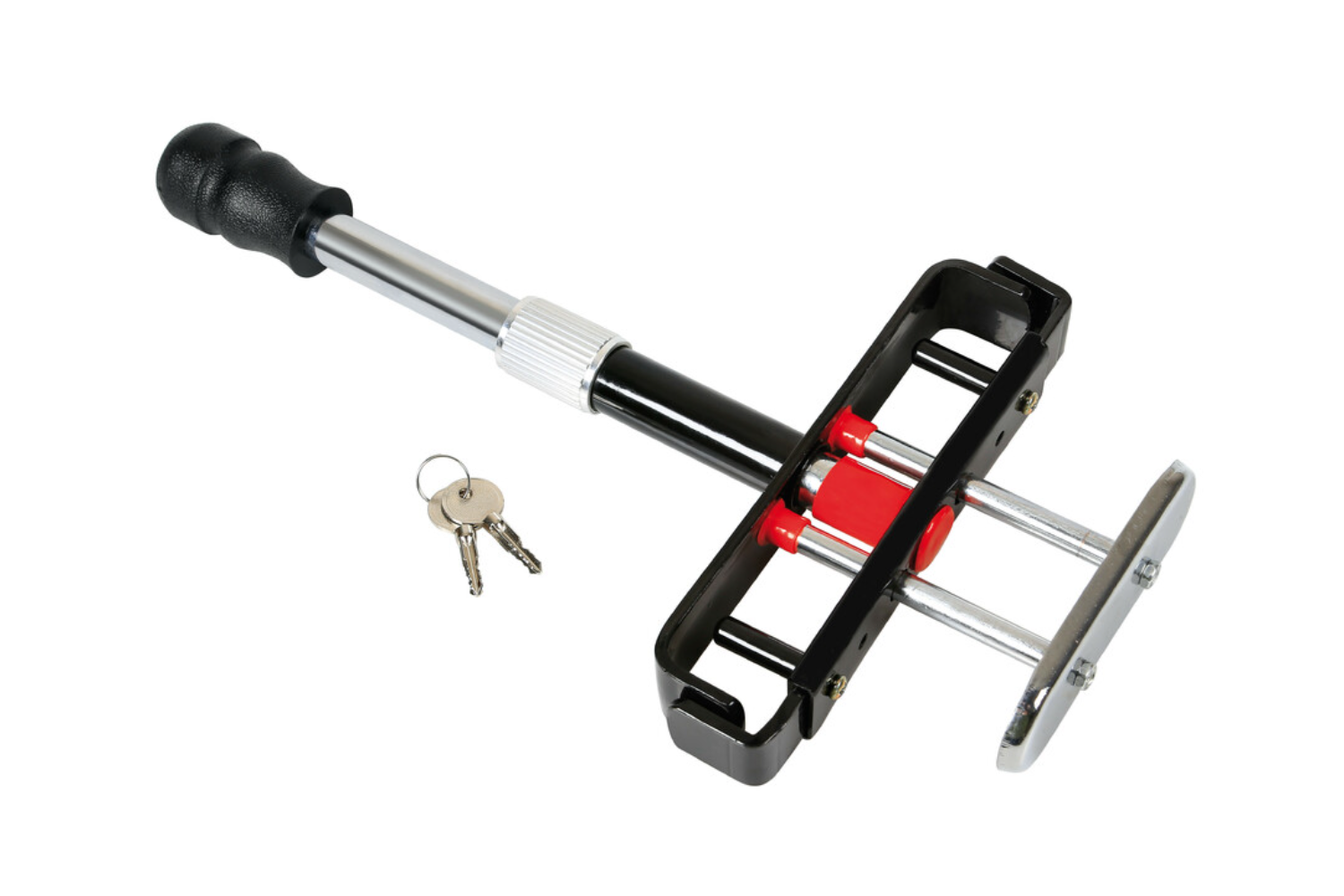 - Zámek pedálu proti krádeži s nastavitelnou šířkou je vhodný pro většinu vozidel. Systém zacvakávacího zámku umožňuje instalaci během několika sekund. Zabraňuje použití brzdy nebo spojky a efektivně zamkne vozidlo.