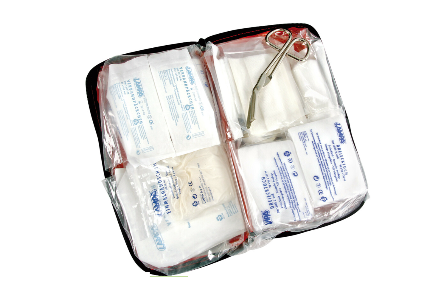Lékárnička – nylonová kapsa nabízí praktické a komplexní vybavení pro první pomoc v odolném nylonovém pouzdře na zip. Díky kompaktnímu designu se snadno skladuje v zavazadlovém prostoru nebo pod sedadlem a v případě nouze je k nim rychlý přístup. Sada splňuje požadavky normy DIN 13164:2022 a obsahuje elastické obvazy, náplasti, nouzovou deku, nůžky a návod k první pomoci. Všechny komponenty byly pečlivě vybrány tak, aby poskytovaly účinnou léčbu zranění a řezných řezů.