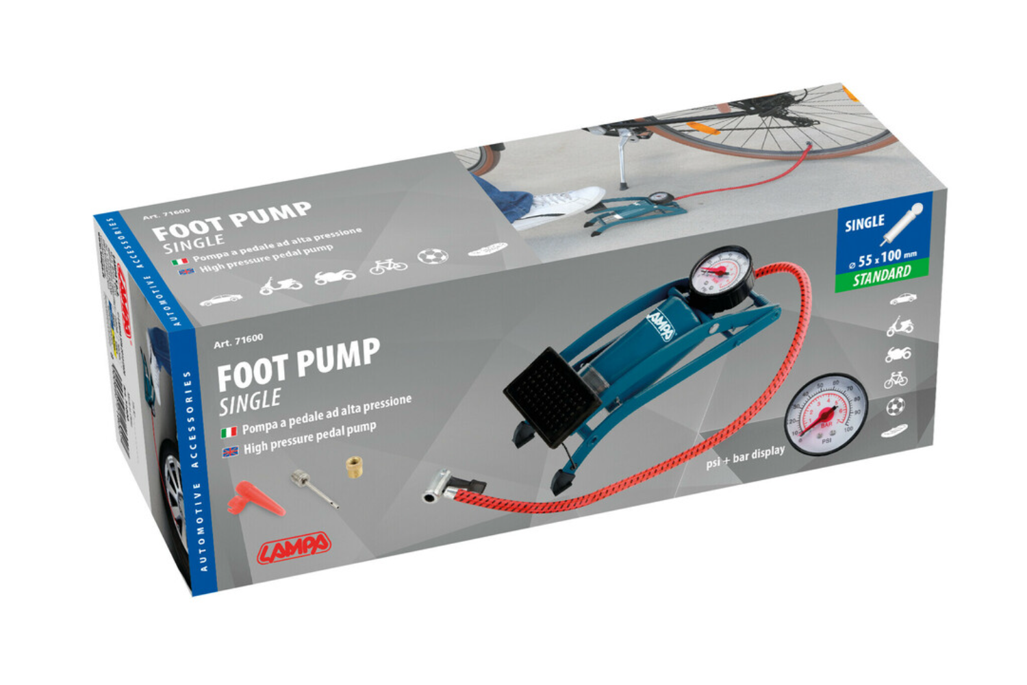 - Tato nožní pumpa s jedním válcem je odolný a všestranný nástroj pro huštění pneumatik, míčů a nafukovacích matrací. Ocelový válec zajišťuje odolnost a řada nástavců rozšiřuje možnosti použití.