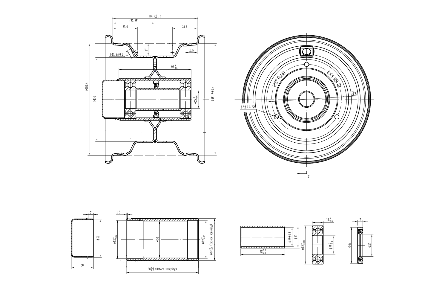 • Tento ráfek H2 o rozměrech 4,5×6 s ložisky 6205-2RS je určen pro užitkové a pracovní stroje. Je ideální pro přepravní, skladové, plošinové a užitkové vozíky, stejně jako pro sekačky na trávu, zahradní traktory a zahradní techniku.
