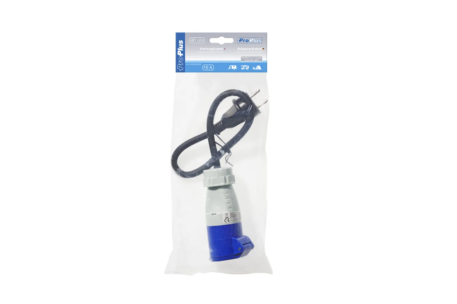 - Adaptér do zásuvky ProPlus CEE/SCHUKO 16A 230V je vysoce kvalitní 40cm kabel pro obytné vozy a přívěsy. Je vyroben z odolného neoprenu, je odolný vůči povětrnostním vlivům a navržen pro bezpečné použití v kempech.