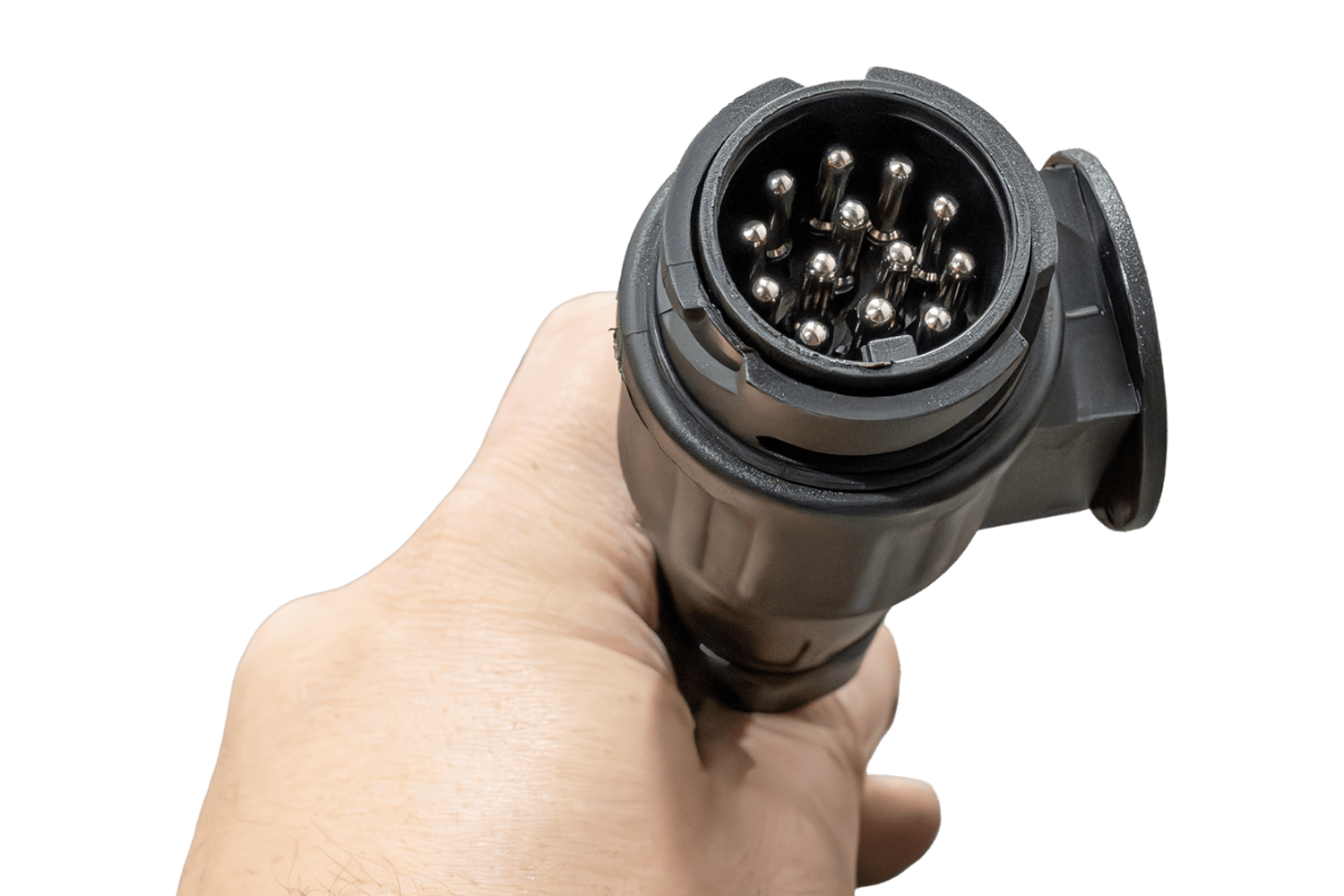 - Elektrický systém MANTES OUTLET je vybaven 5metrovým kabelem zakončeným 13kolíkovou zástrčkou. Kabeláž zajišťuje správný provoz osvětlení v přívěsech nákladních vozidel a plošinových přívěsech, zatímco 5kolíkové bajonetové konektory umožňují rychlou a bez