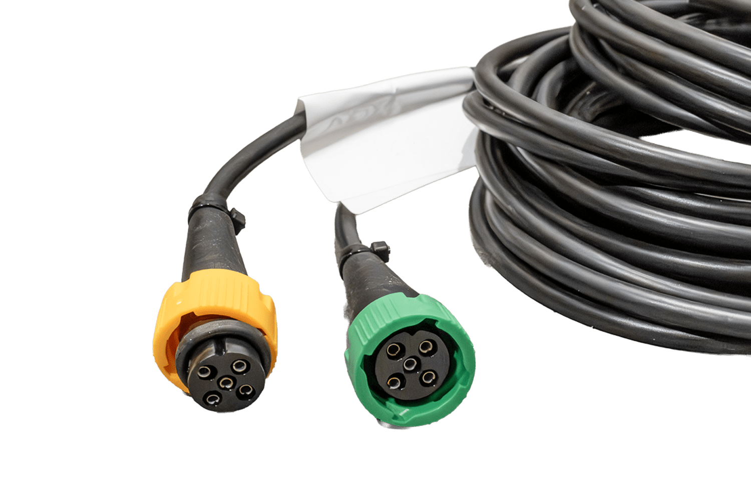 Kabeláž je vybavena dvěma 5pinovými bajonetovými konektory pro připojení zadních světel. Bajonetový systém zajišťuje rychlou a bezpečnou instalaci a eliminuje riziko náhodného odpojení během jízdy. Konstrukce konektoru zaručuje vodotěsné spojení a chrání kontakty před korozí, čímž zajišťuje dlouhodobý a bezproblémový provoz celého systému osvětlení přívěsu.