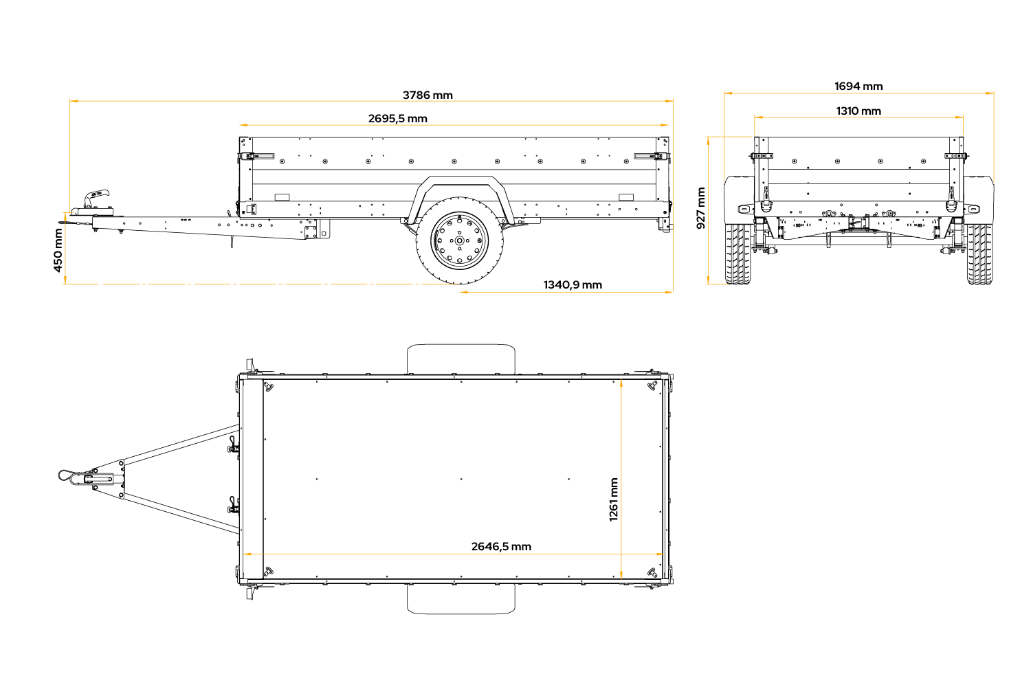 Díky výklopné oji je vykládání přívěsu snadné, rychlé a pohodlné. Otevírací a odnímatelná zadní výklopná záď poskytuje další pohodlí.
