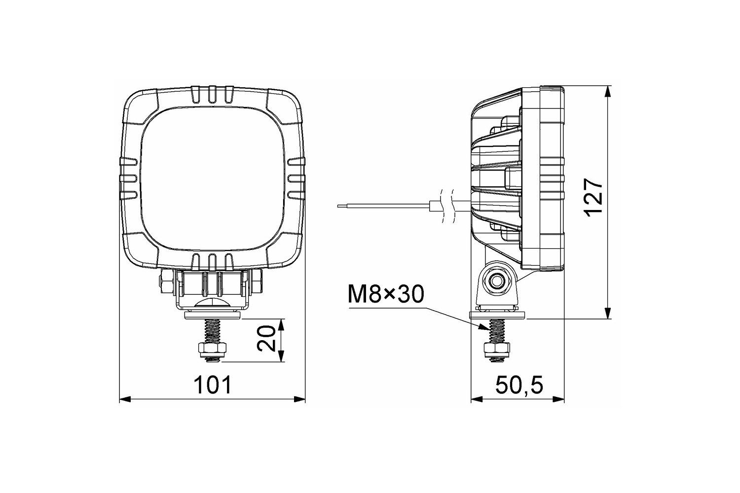 Svítidlo je vybaveno montážním držákem , který umožňuje stabilní montáž i na těžko dostupných místech. Naklápěcí podpěra umožňuje nastavení úhlu a přesné nastavení směru světla. Je vhodné pro vozidla, jako jsou specializovaná vozidla, zemědělské stroje a stavební stroje .