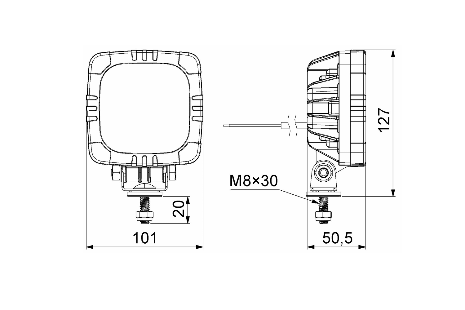 Přední LED světlo LZD 2805 z řady ROCA, určené pro montáž na levou i pravou stranu vozidla , měří 101 mm na šířku, 127 mm na výšku a 50,5 mm do hloubky . Je navrženo pro provoz v rozsahu napětí 12–24 V a je vybaveno 1 m dlouhým kabelem s průřezem 4 x 0,5 mm² pro rychlou a snadnou instalaci. Díky LED technologii poskytuje světlo vysoký výkon, odolnost a energetickou účinnost, což zajišťuje bezpečnost v různých silničních podmínkách.