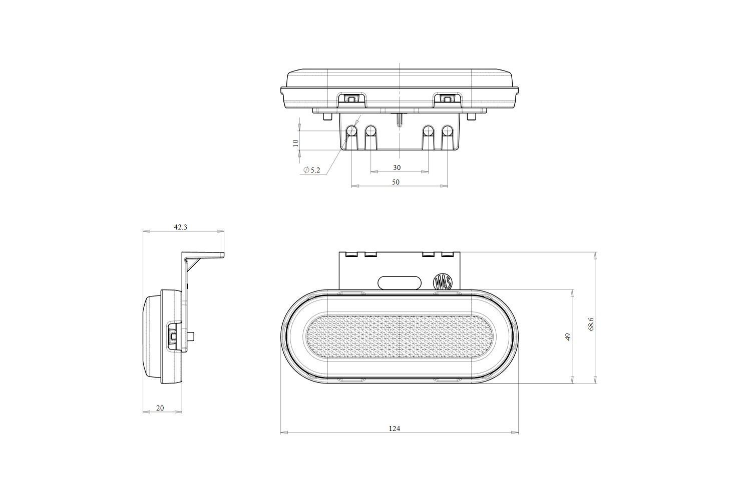 - Obrysové světlo W198 1420 LED od společnosti WAŚ lze namontovat na levou nebo pravou stranu. Nabízí funkce jako boční obrysové světlo, směrové světlo a odrazka. Ideální pro přívěsy, dodávky a obytné vozy.