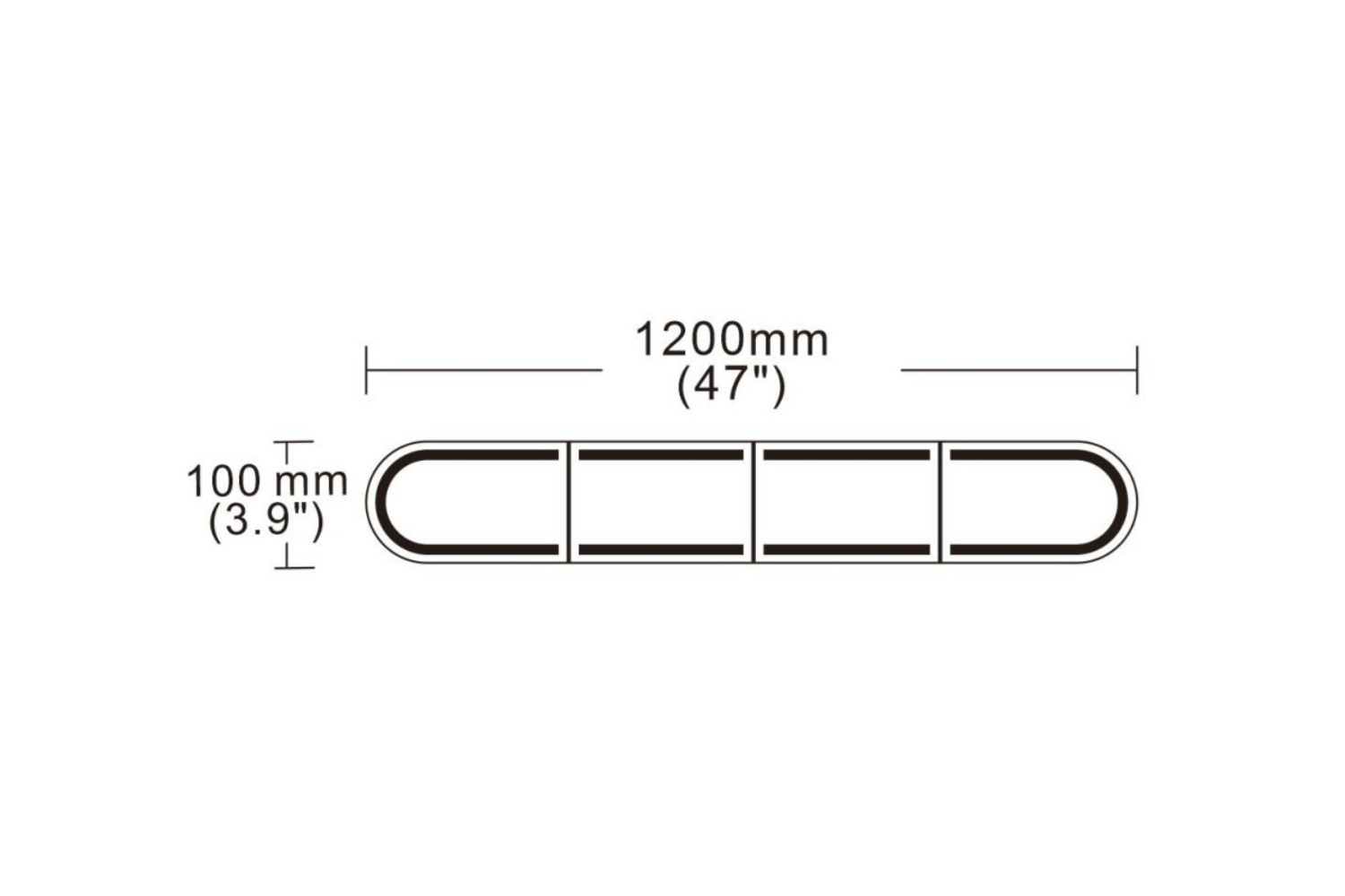 Tento štíhlý, 1200 mm dlouhý LED výstražný maják s tmavou povrchovou úpravou je moderním a efektivním řešením pro vozidla vyžadující účinnou signalizaci. Je vybaven 204 86W LED diodami a generuje intenzivní výstražné světlo, které zajišťuje vynikající viditelnost za všech podmínek. Nabízí šest režimů blikání : jednoduchý, dvojitý, čtyřnásobný a střídavý, a také dvě úrovně jasu (denní a noční) , což vám umožňuje přizpůsobit provoz vašemu pracovnímu prostředí.