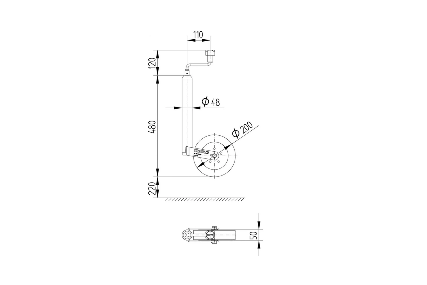 Oporné kolo s objímkou KNOTT TK48+LB48 150kg 48mm 480-700mm