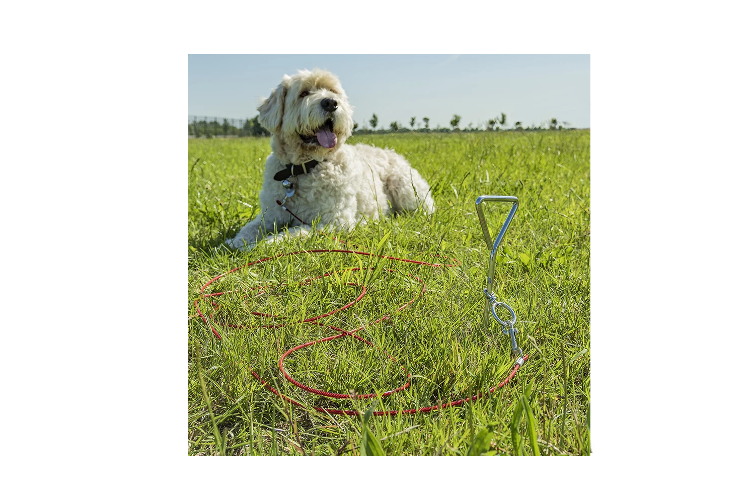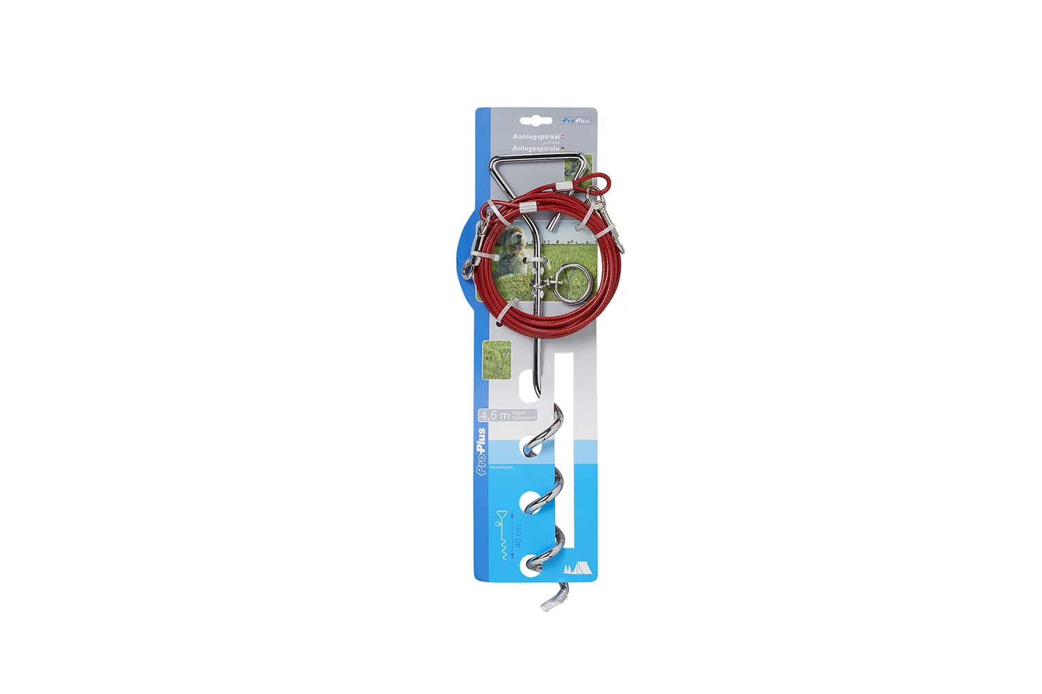 - Tato 4,5m spirálová tyč s ocelovým lanem je praktickým doplňkem pro uvázání vašeho mazlíčka venku. Je ideální na zahradu, kempování, na zahradu nebo piknik a zajistí vašemu psovi volný pohyb ve vyhrazené oblasti.
