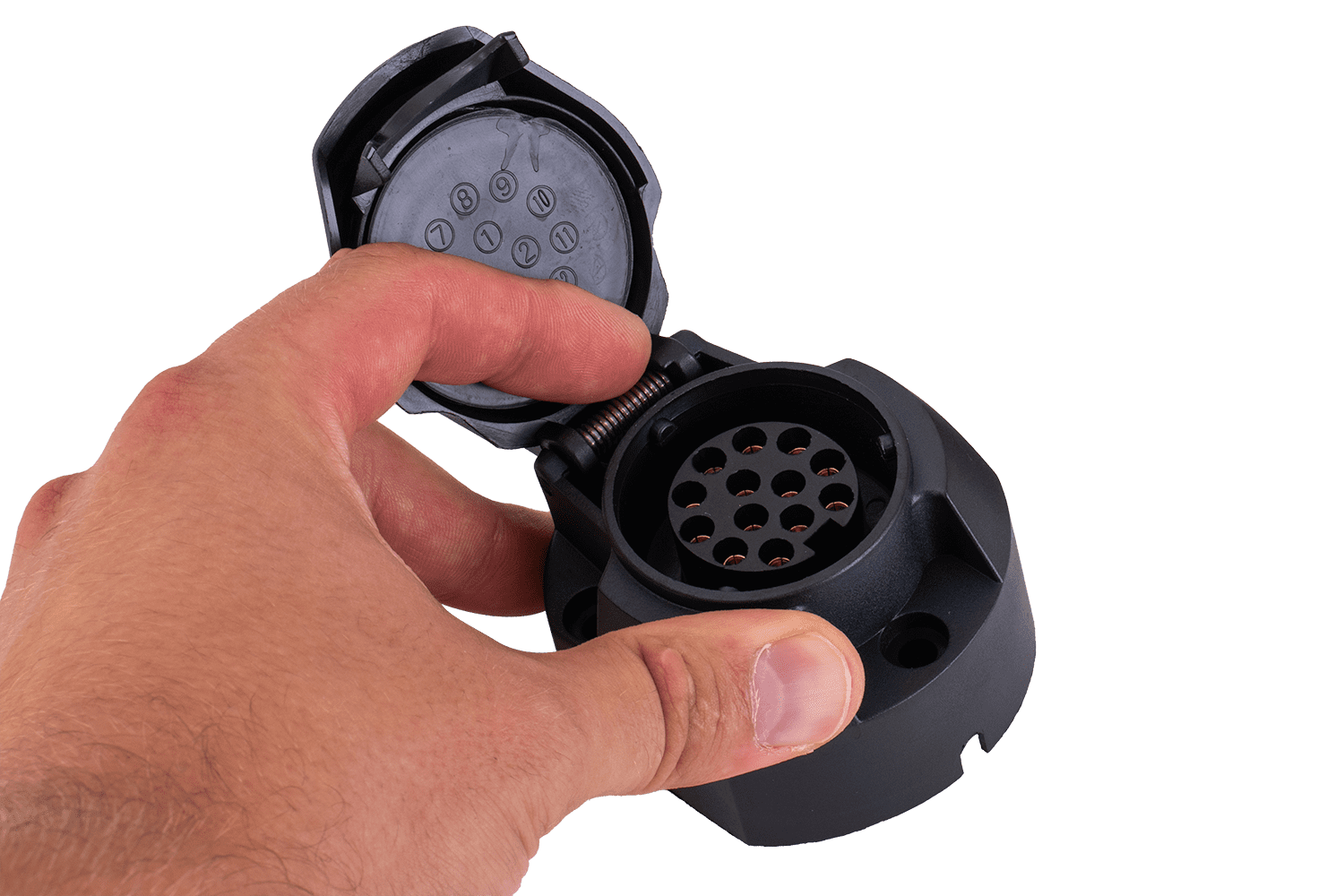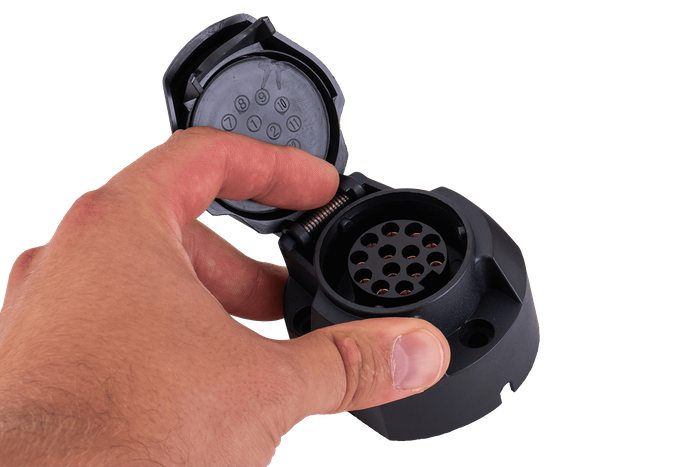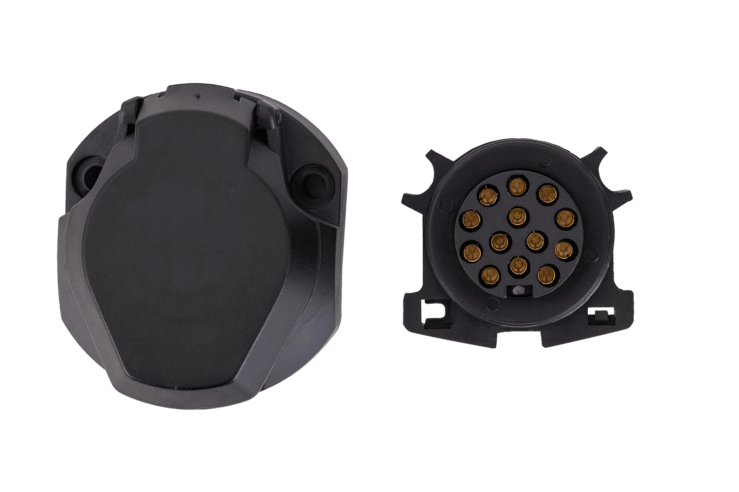 13kolíková zásuvka je určena k montáži na tažné zařízení vozidla a k připojení přívěsu. Její konstrukce umožňuje přenos signálů do komponentů, jako jsou couvací světla, směrová světla, brzdová světla a vnitřní osvětlení karavanu. To je obzvláště důležité při tažení těžších přívěsů, které vyžadují rozsáhlejší elektrické připojení než standardní 7kolíková zásuvka.