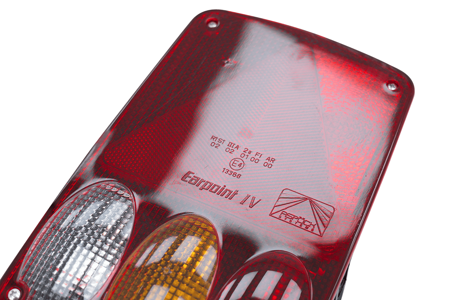 - Zadní svítilna Earpoint IV ASPÖCK pro montáž na levou stranu. Nabízí šest funkcí: poziční světlo, brzdové světlo, mlhové světlo, couvací světlo, směrovka a odrazka. Ideální pro použití v přívěsech, nákladních automobilech a zemědělských strojích.