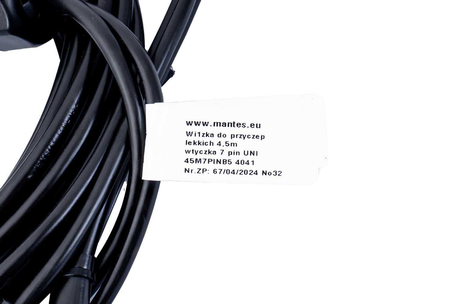 Elektrický systém MANTES je praktické a spolehlivé řešení pro přívěsy automobilů. Hlavní kabel o délce 4,5 metru s průřezem 0,5 mm² je vybaven standardní 7pinovou zástrčkou , což zajišťuje univerzální kompatibilitu s většinou vozidel.