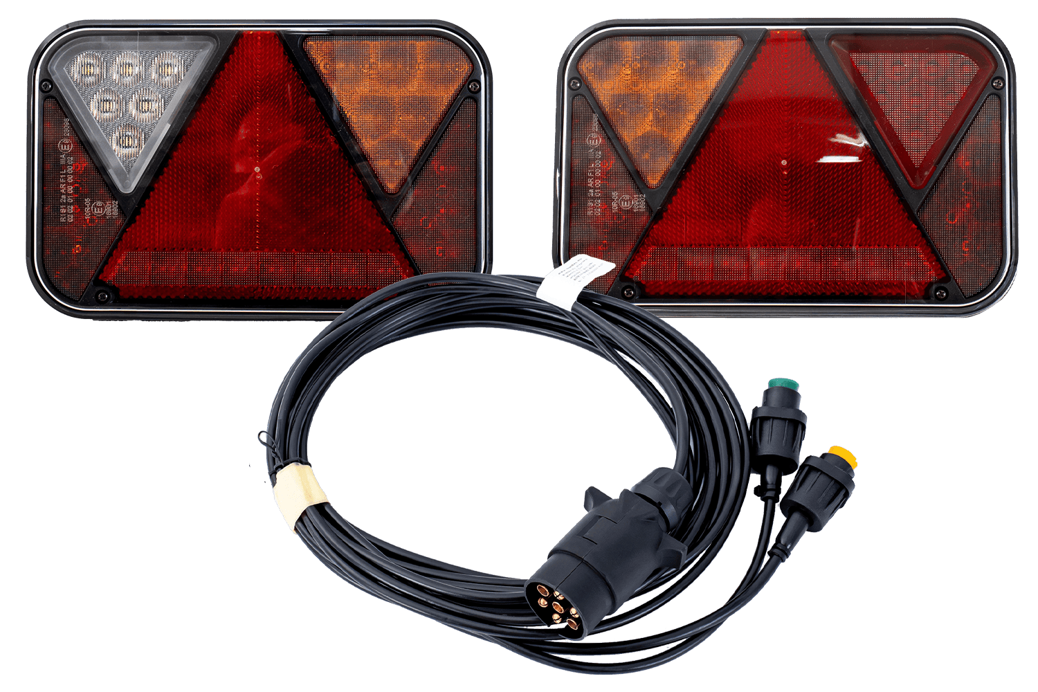Sada osvětlení je elektrické řešení, které poskytuje kompletní a legální osvětlení pro přívěsy, návěsy a další dopravní prostředky , čímž zvyšuje jejich viditelnost a bezpečnost silničního provozu. Skládá se ze zadních světel a kabelového svazku. Díky vysoce kvalitním komponentům... zaručuje spolehlivý provoz a dobrou viditelnost a shoda s platnými bezpečnostními normami. Je to perfektní volba pro ty, kteří hledají odolný a efektivní systém osvětlení vozidel .