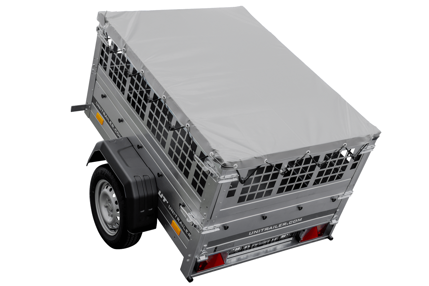 Přívěs Garden Trailer 150 KIPP s síťovanými bočnicemi a šedou plachtou