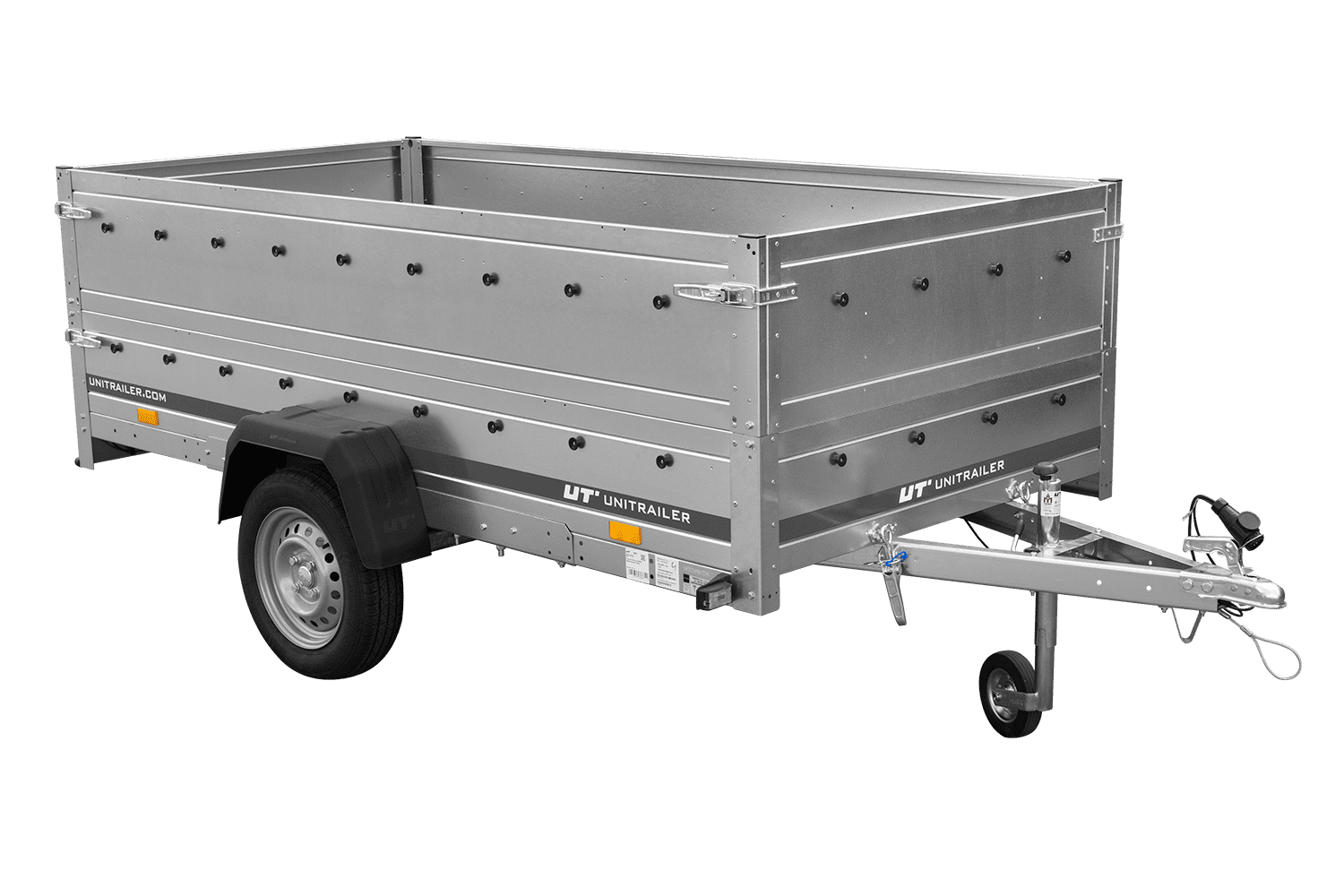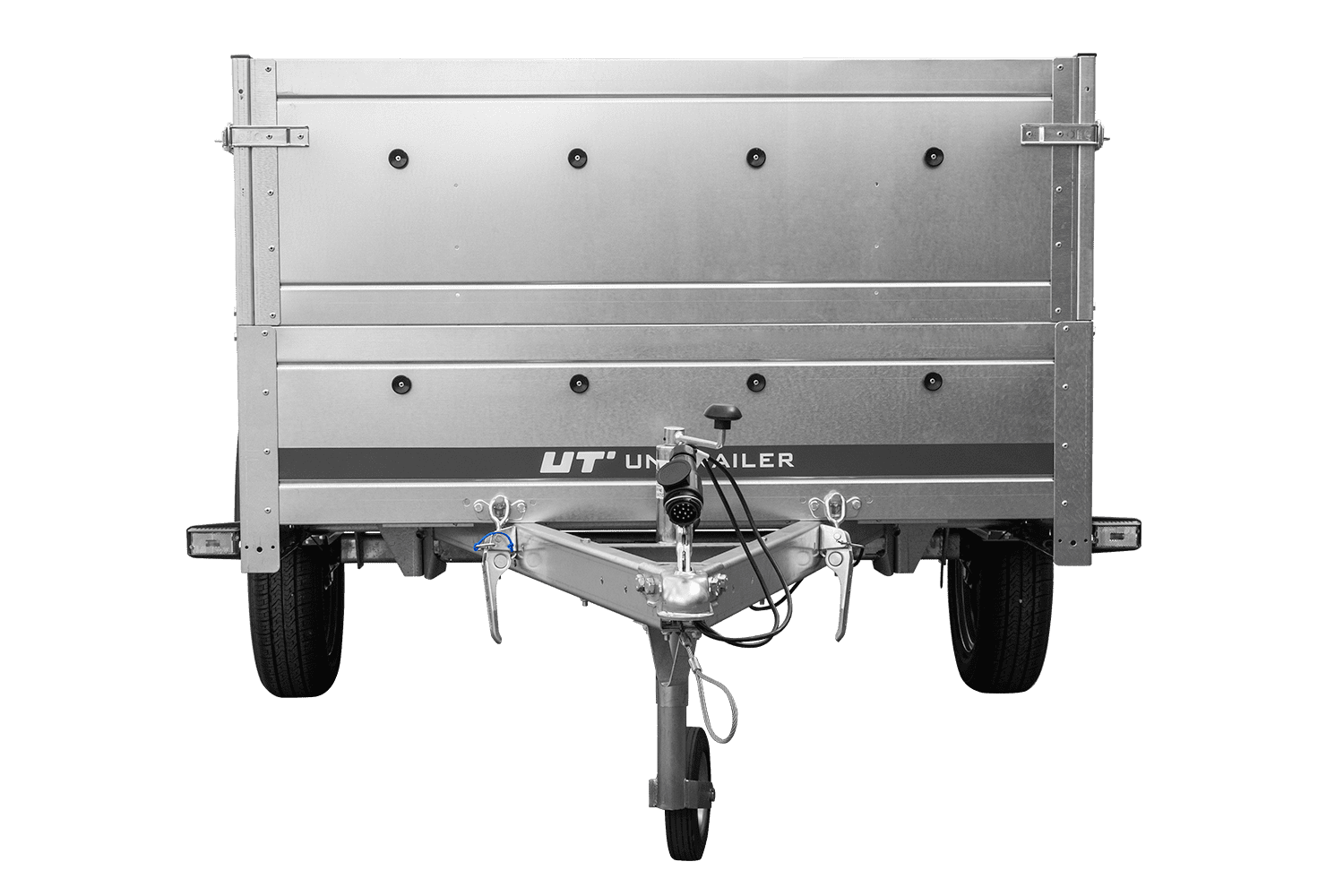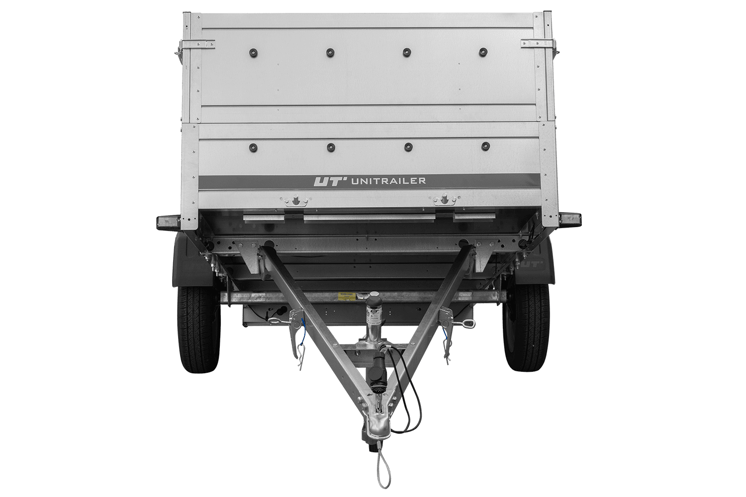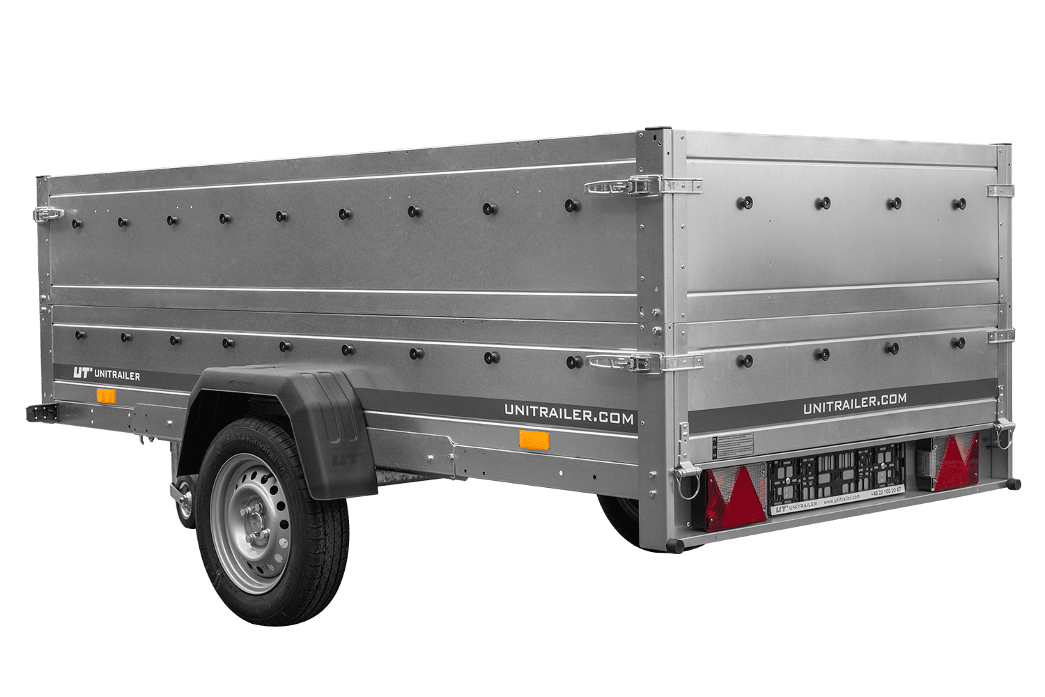 - Velký přívěs se sklopnou ojí a bočnicemi o celkové výšce 70 cm. Největší přívěs s CPH od 300 do 750 kg.
