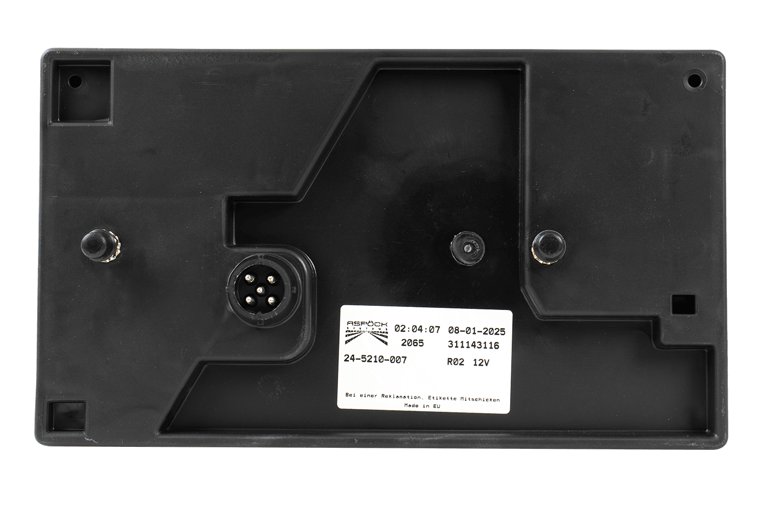 Zadní svítilna Multipoint I od ASPÖCK je určena pro montáž na pravou stranu vozidla a má tyto rozměry: šířka 240 mm, výška 140 mm, hloubka 52 mm . Je vybaven 5pinovým bajonetovým konektorem a umožňuje snadnou a rychlou instalaci v přívěsech, autobusech a odtahových vozech .