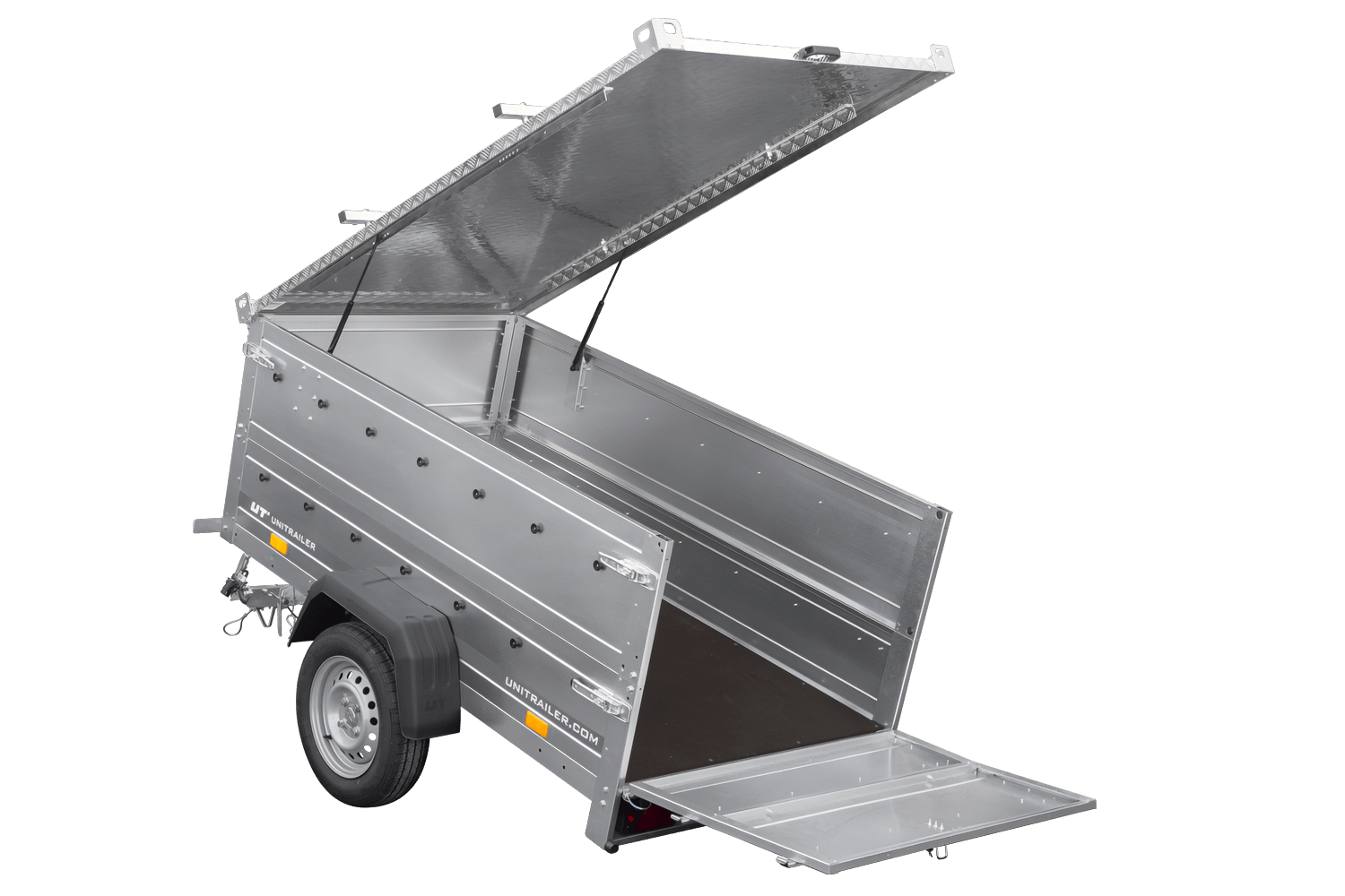 Přívěs s krytem ALU UNITRAILER Garden Trailer 200 KIPP CPH do 750 kg. Má otevírací zadní čelo, nakládání a vykládání je možné během několika minut! Díky použití sklopné oje jej lze na zadní stranu umístit svisle na libovolné místo. Přívěsy Garden Trailer 200 mají další výhodu, a to možnost jejich vyklápění, díky které je vykládání sypkého zboží pohodlné a rychlé. Přívěs je vybaven bočnícemi BIS, díky nimž je nakládací výška zvýšena. Bočníce BIS lze rozebrat.