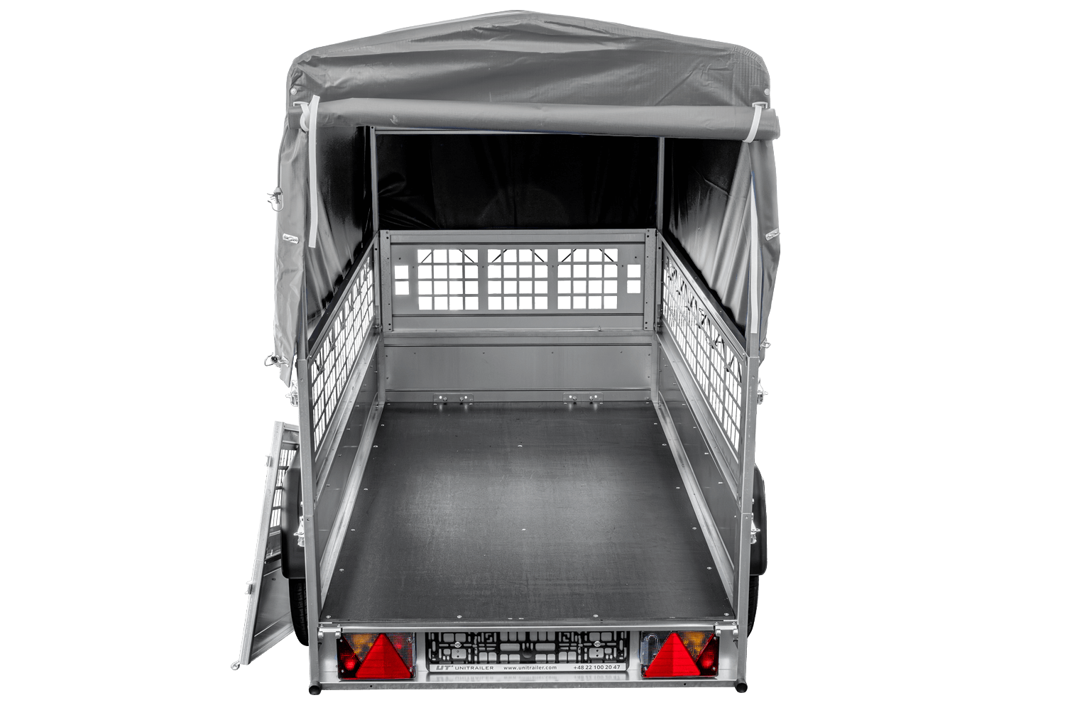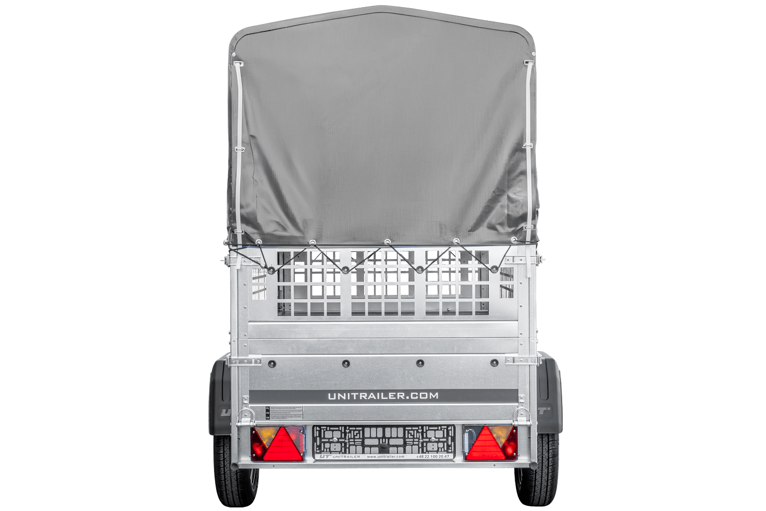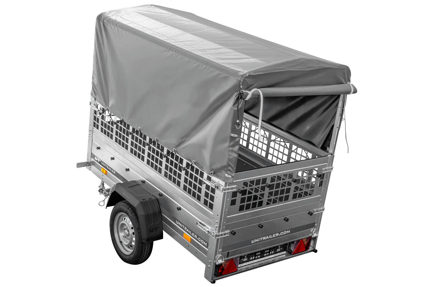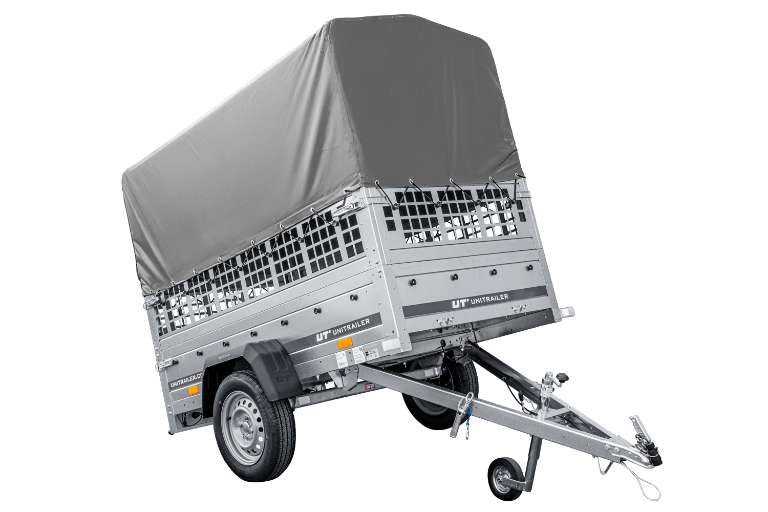Přívěs Garden Trailer 200 KIPP s síťovanými bočnicemi, rámem H-800 a šedou plachtou