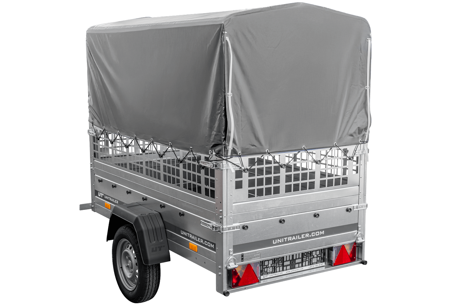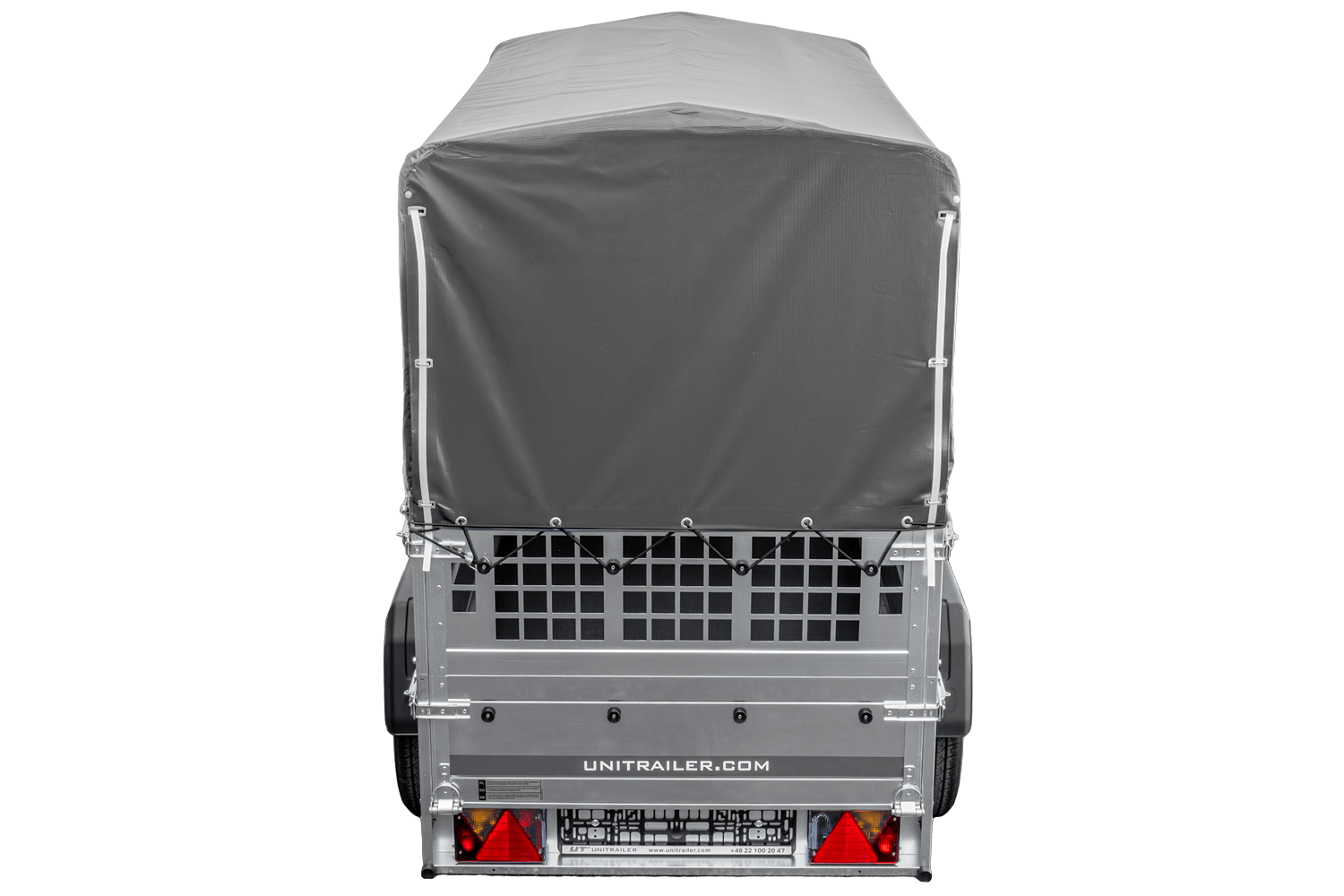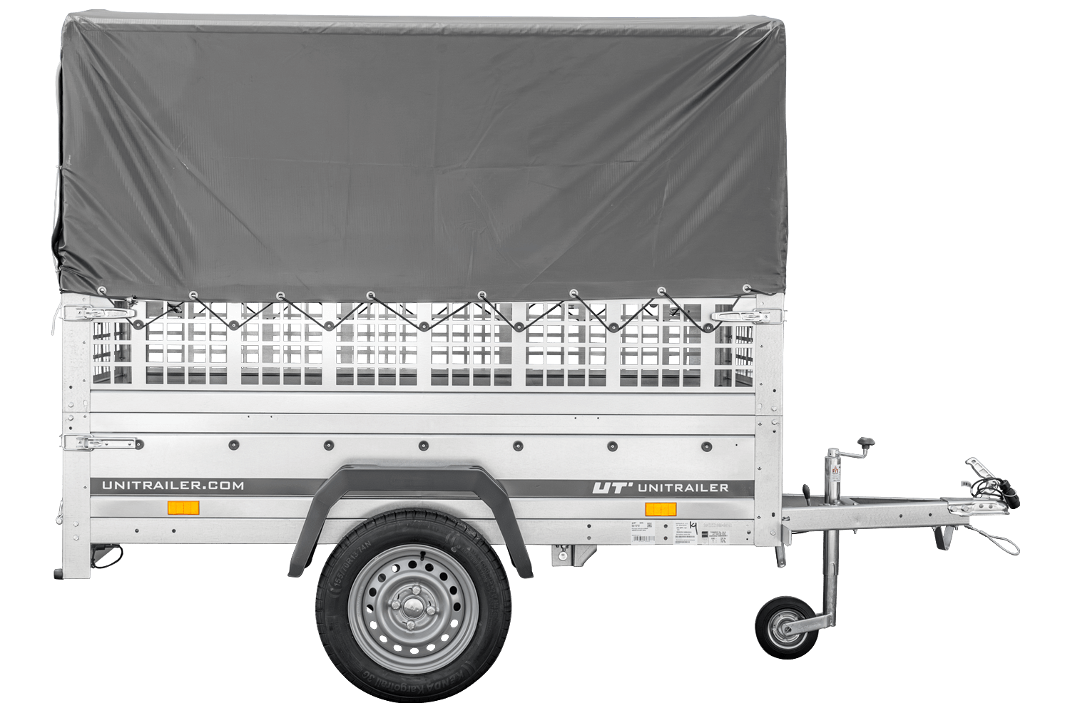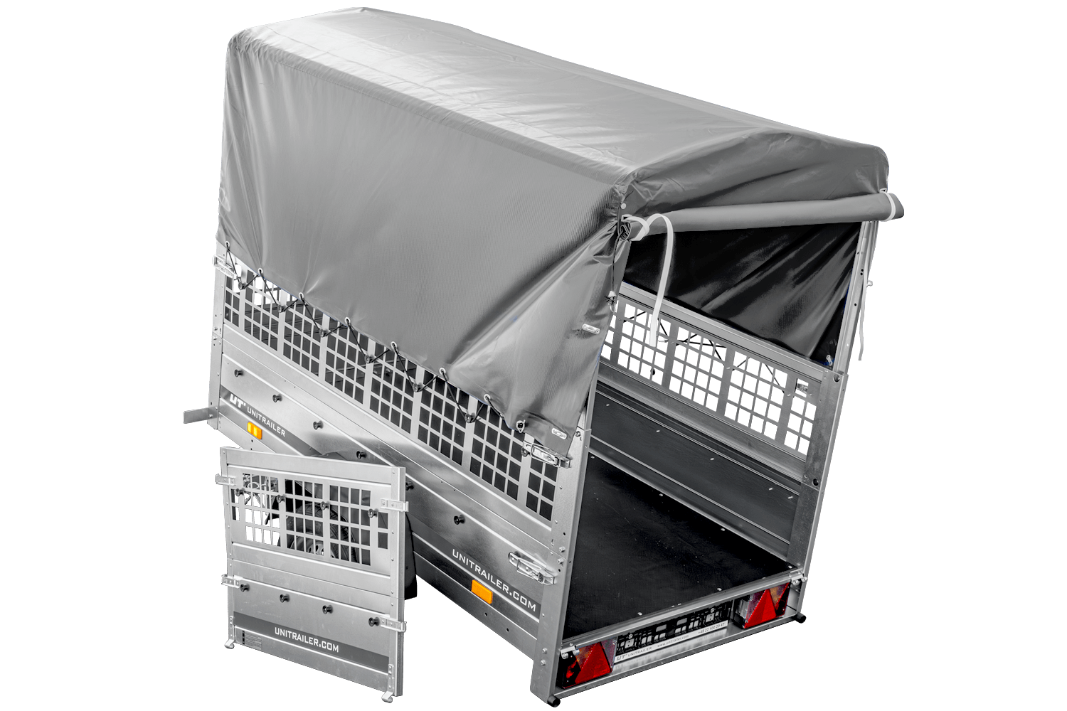 Přívěs Garden Trailer 200 KIPP s síťovanými bočnicemi, rámem H-800 a šedou plachtou