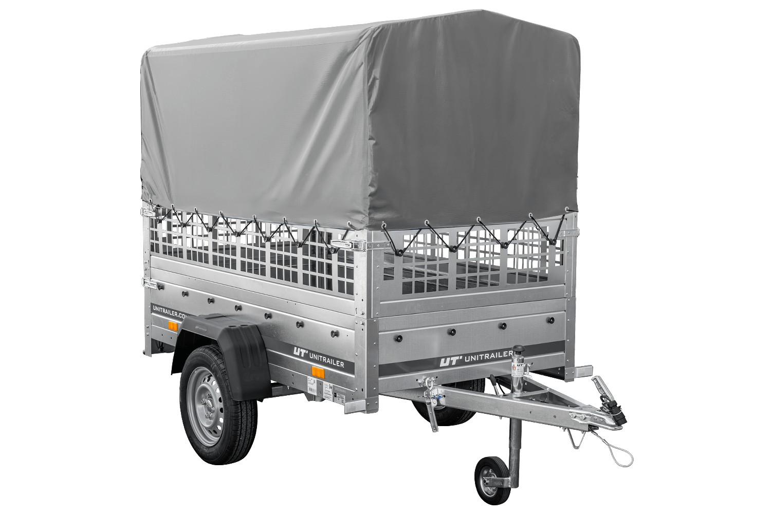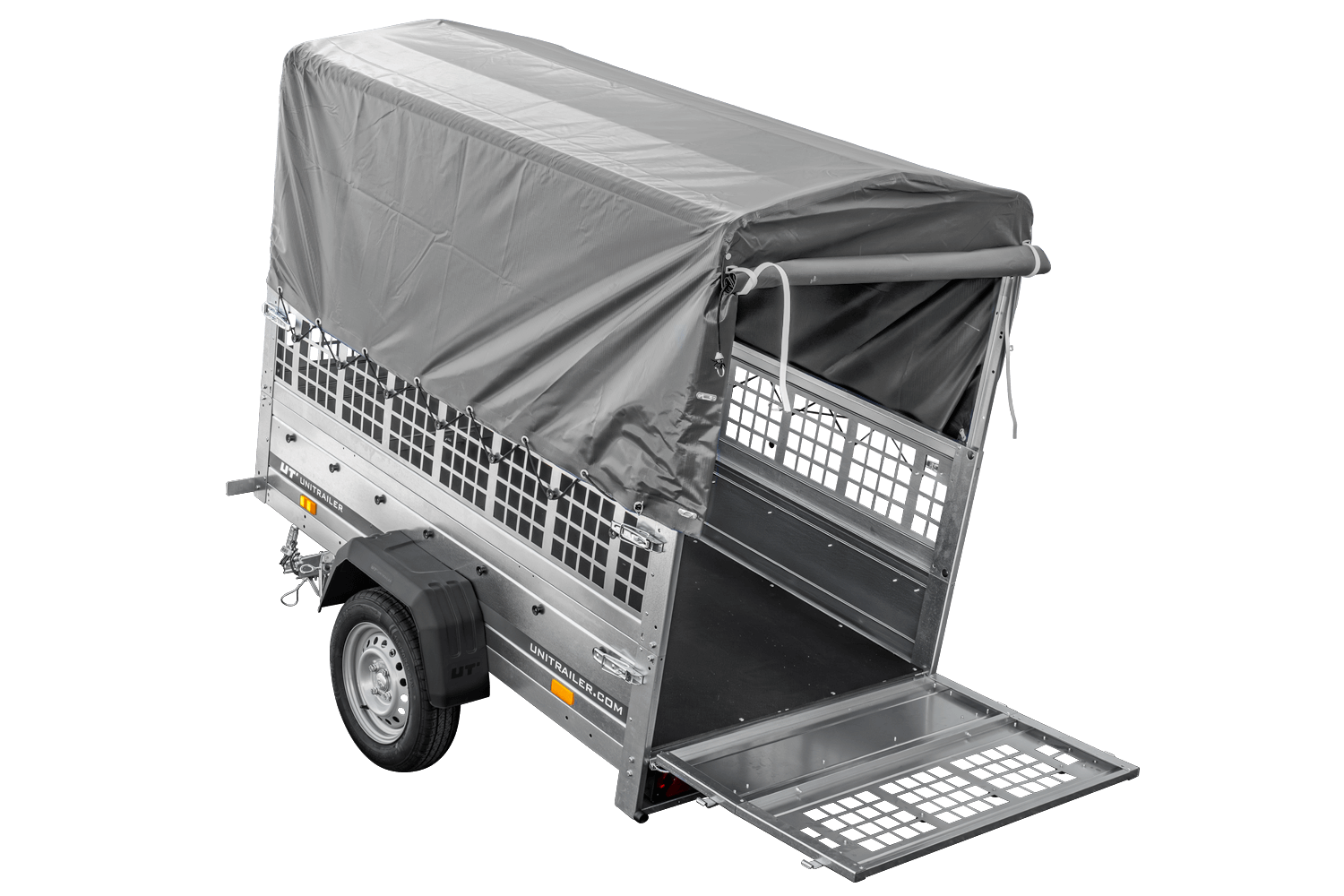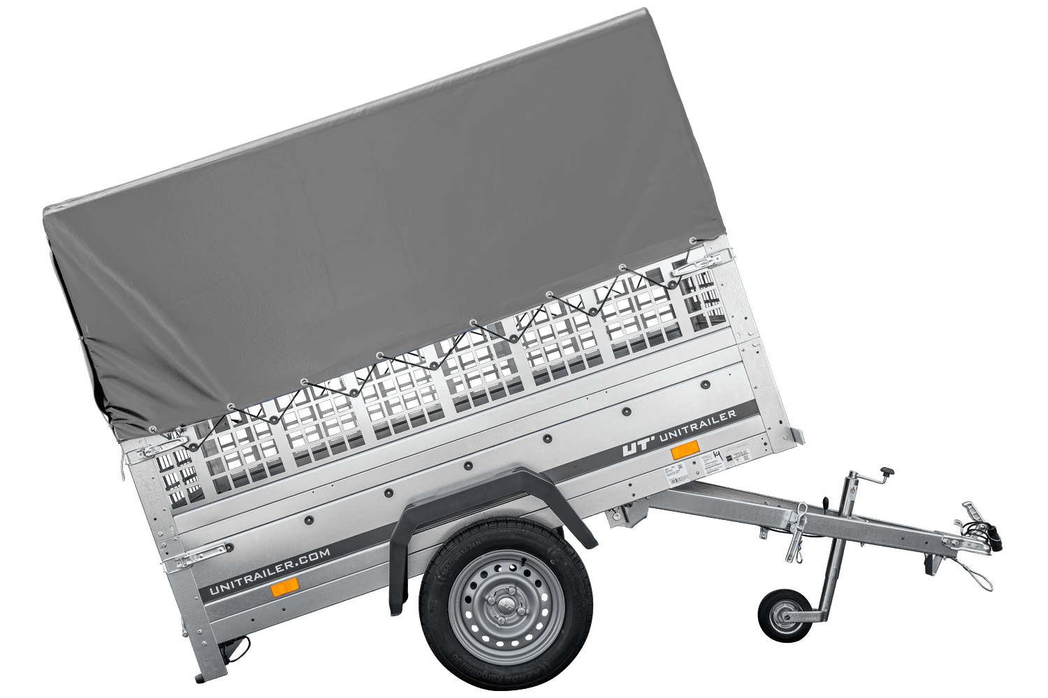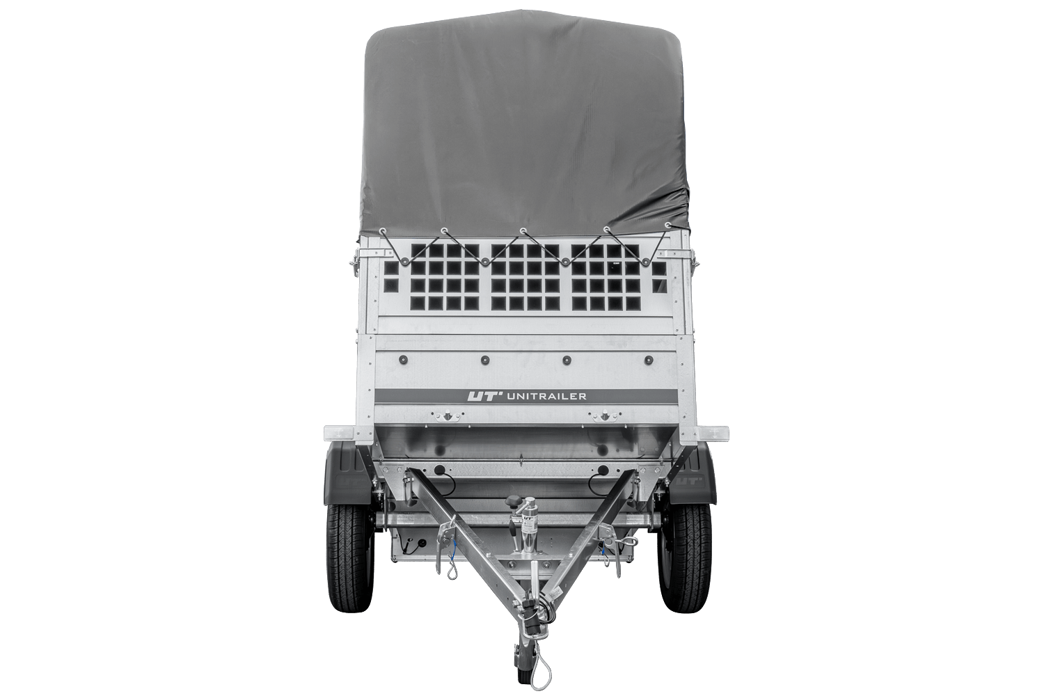 Přívěs Garden Trailer 200 KIPP s síťovanými bočnicemi, rámem H-800 a šedou plachtou
