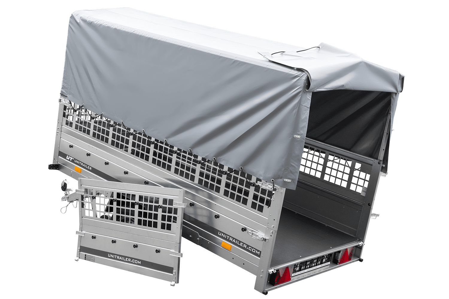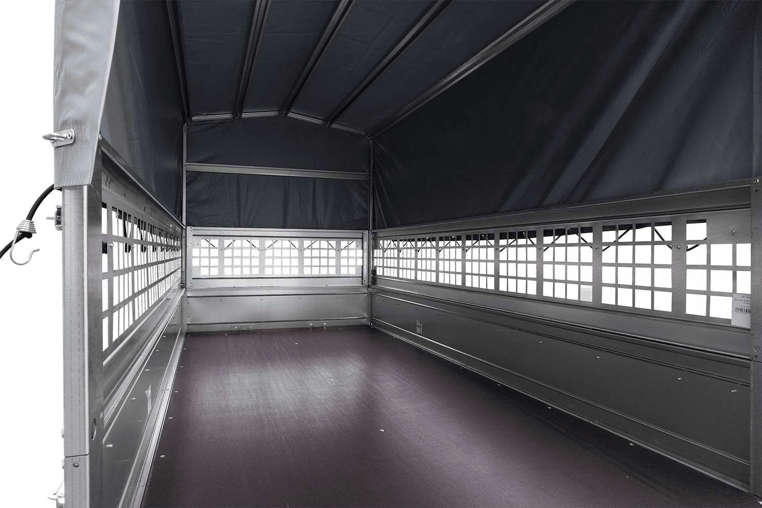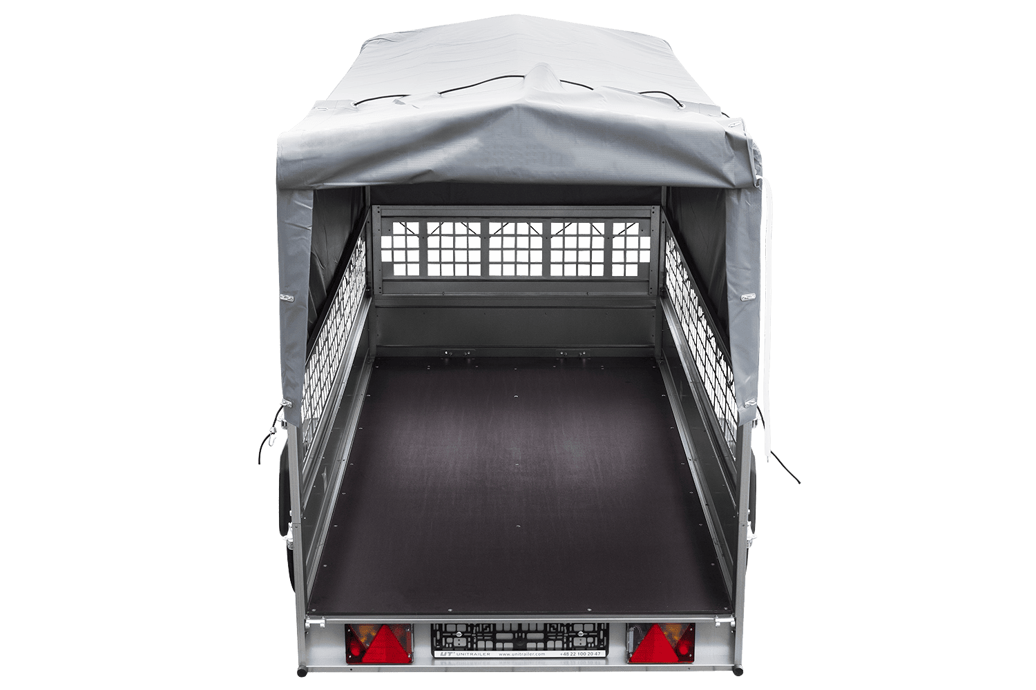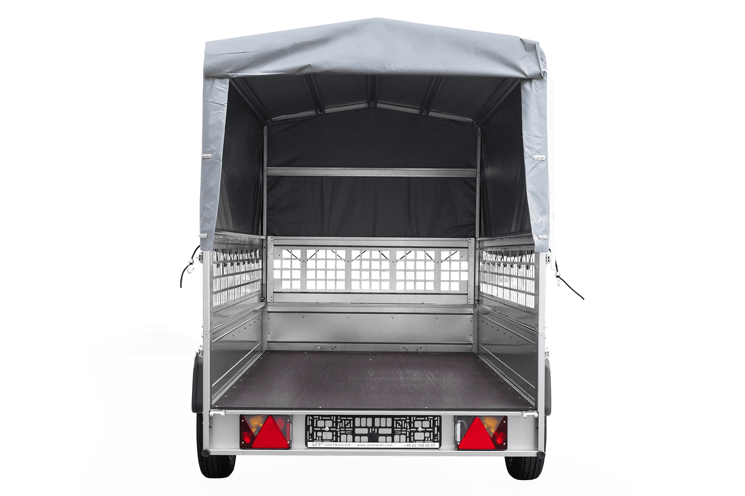 Přívěs Garden Trailer 264 KIPP s síťovými bočnicemi, rámem H-800 a šedou plachtou