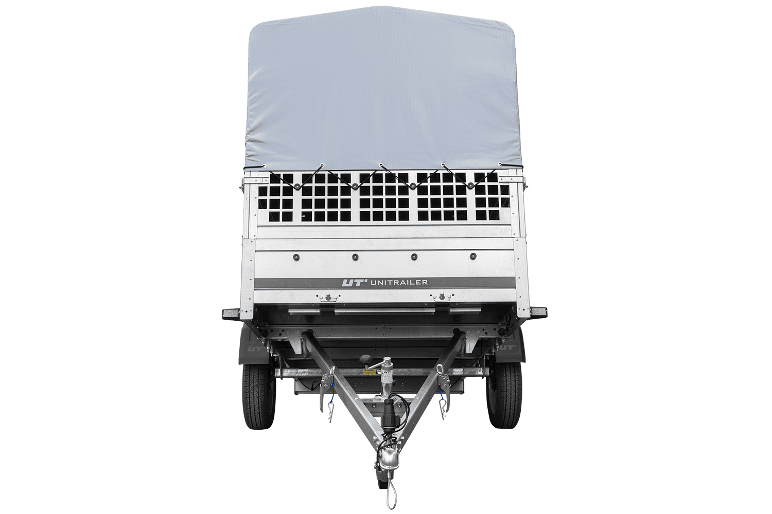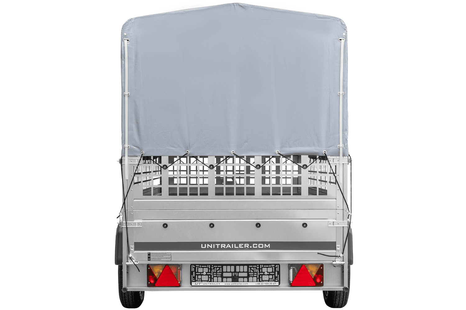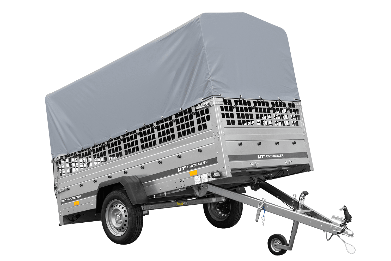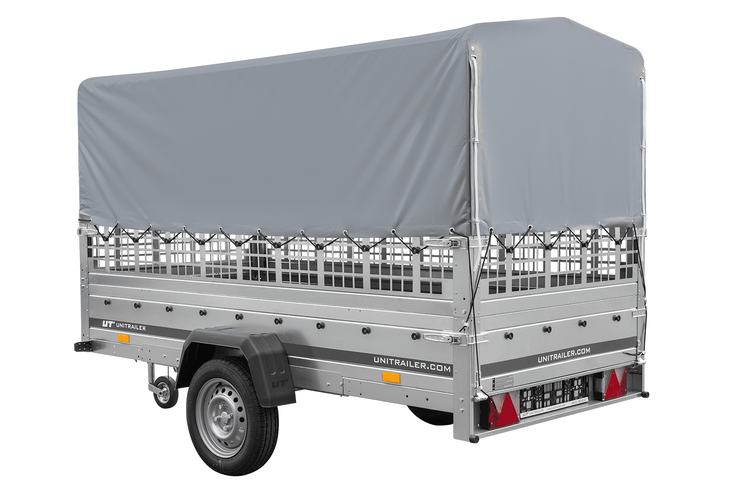 Přívěs Garden Trailer 264 KIPP s síťovými bočnicemi, rámem H-800 a šedou plachtou