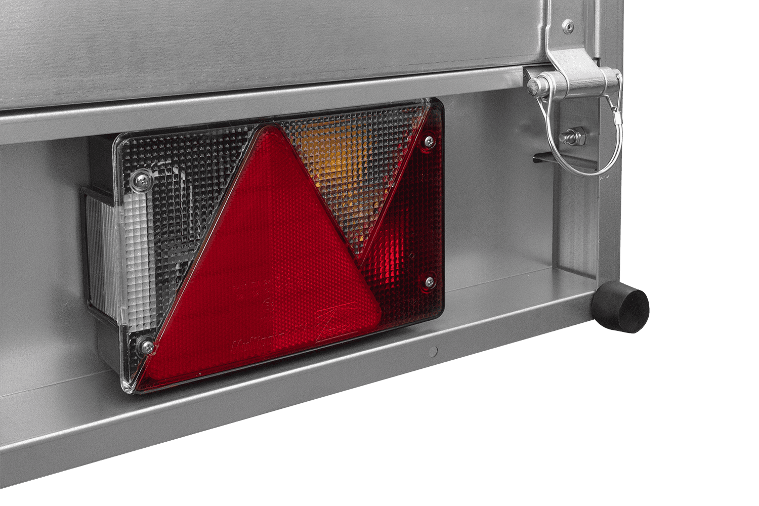 Jednonápravový sklápěcí přívěs GARDEN TRAILER 264 KIPP má otevírací zadní stranu, která umožňuje přepravu delších předmětů přesahujících rozměry přívěsu. Konfigurace přívěsu zahrnuje také funkci sklápění a sklopnou oj, což usnadňuje vykládku sypkého materiálu. Sklopná oj navíc umožňuje vertikální skladování přívěsu na zadní straně, což šetří značné místo. Sada obsahuje také rám s krytem, který je ideální do drsných povětrnostních podmínek a chrání přepravovaný náklad. Modrá plachta dokonale doplňuje pozinkované boky přívěsu. Oporné kolo umožňuje snadné připojení přívěsu k vozidlu.
