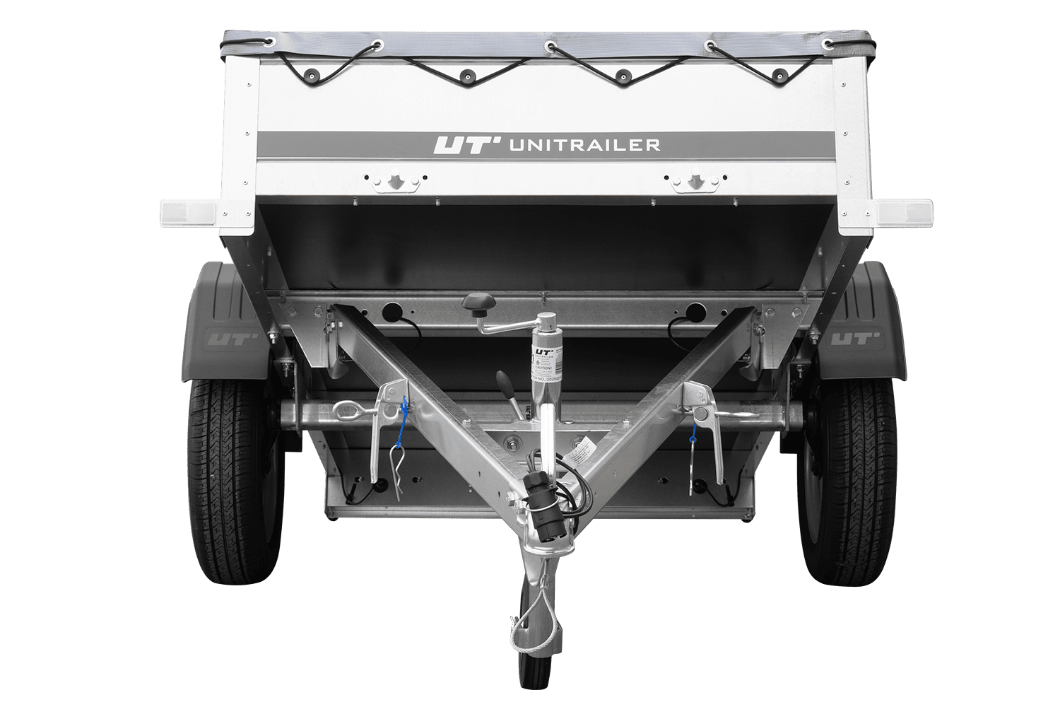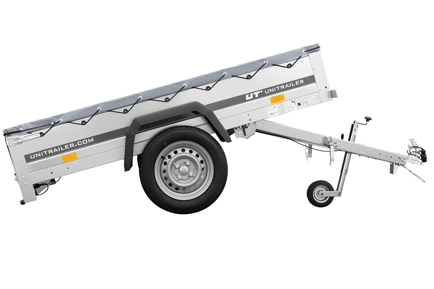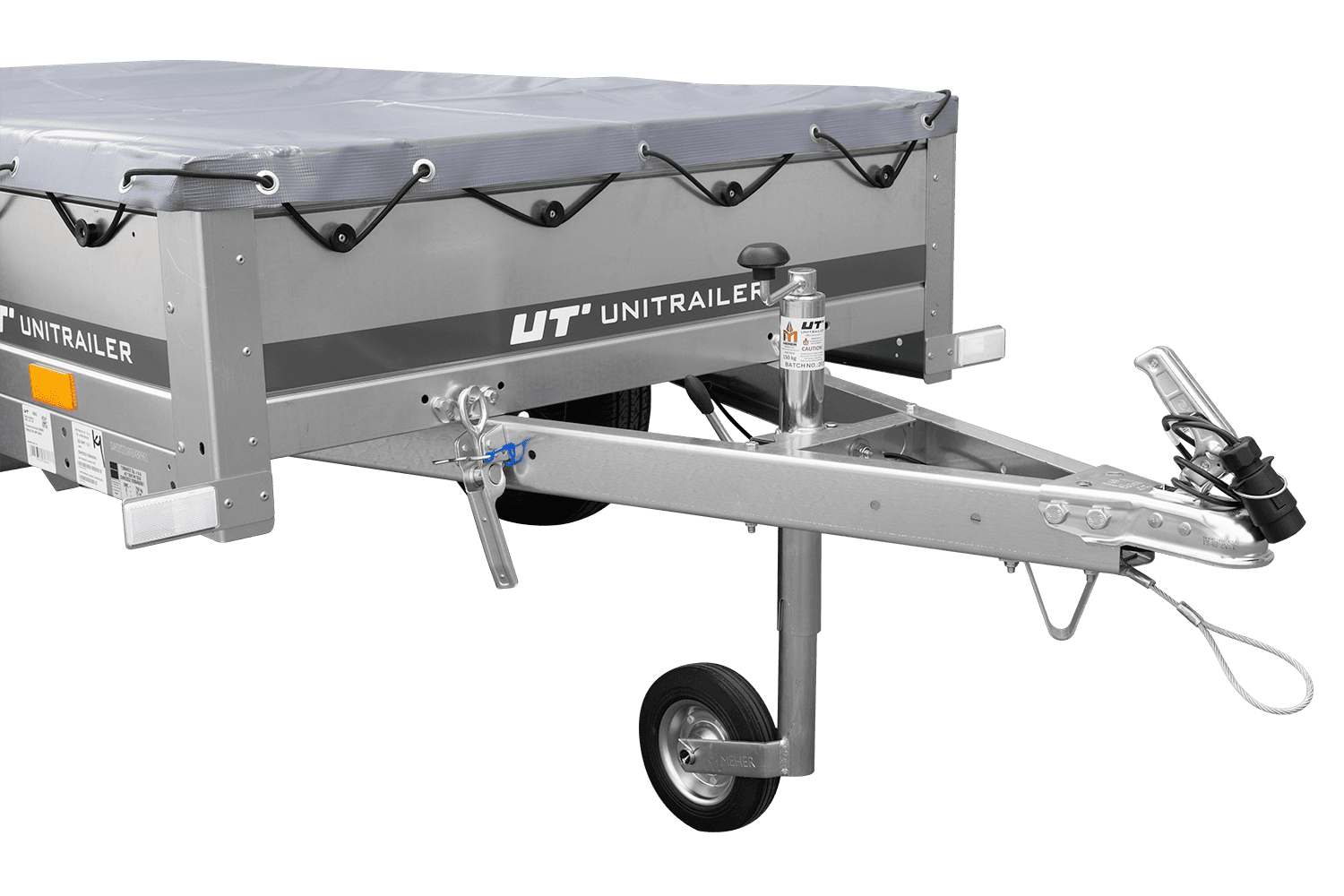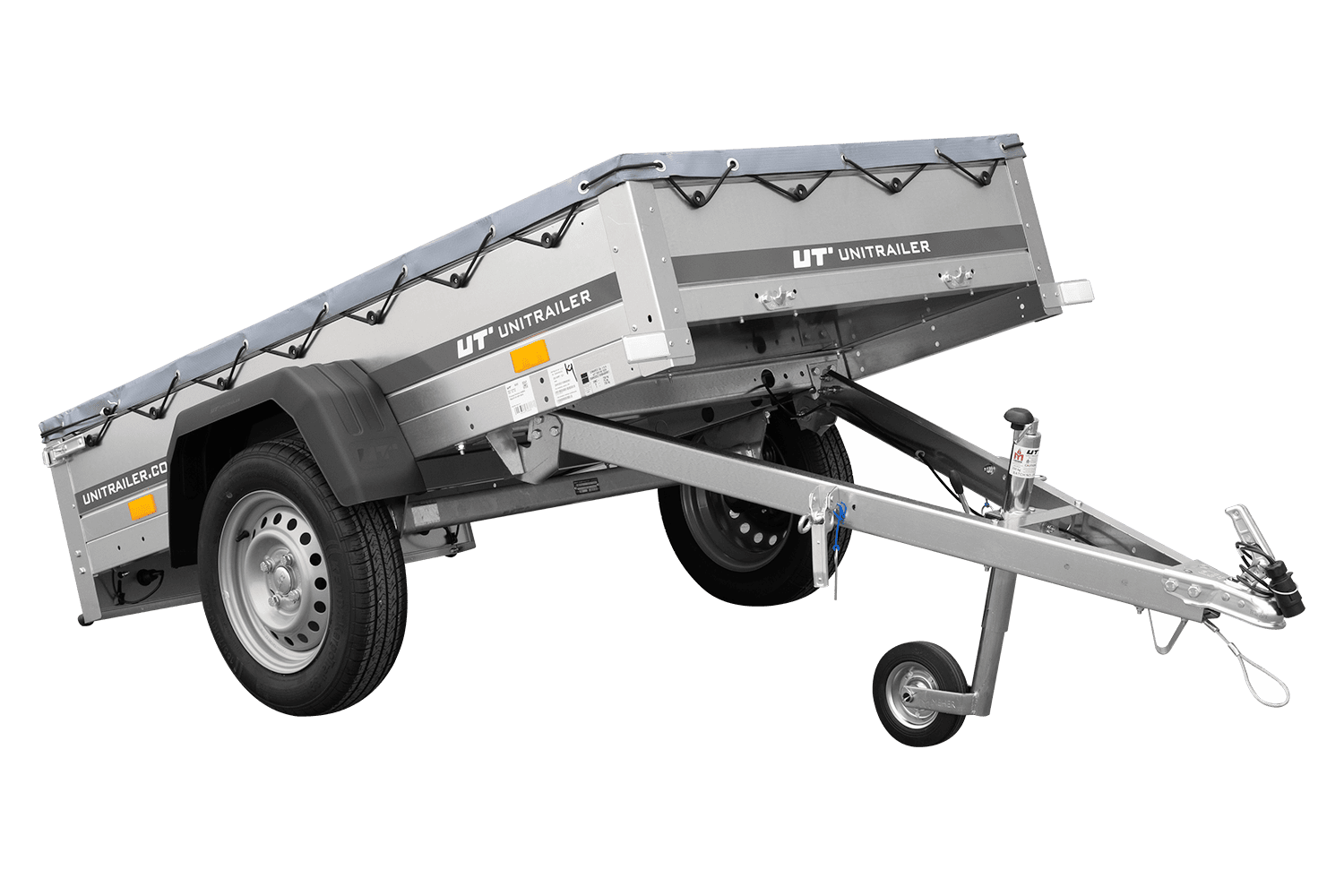 - PODVOZEK - torzní náprava od uznávaného výrobce ALKO - zakázková výroba pro Unitrailer. Rozměr kol: 155/70 R13. Výklopná oj typu "V", kterou lze kdykoli sklopit pod přívěs.