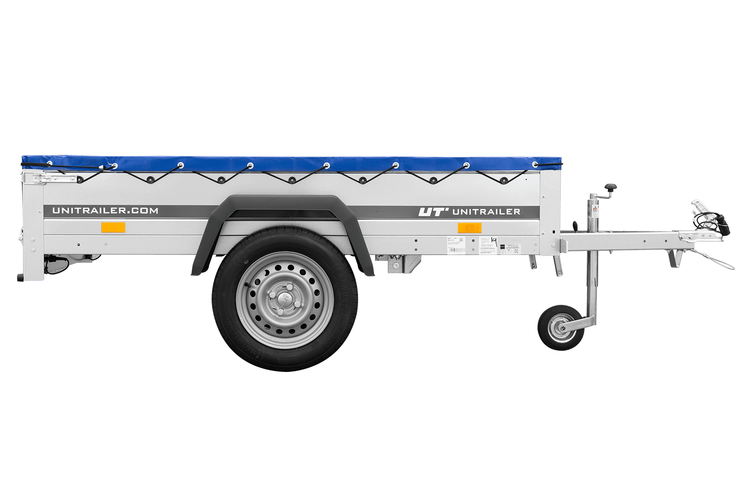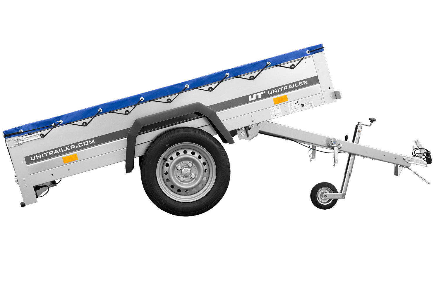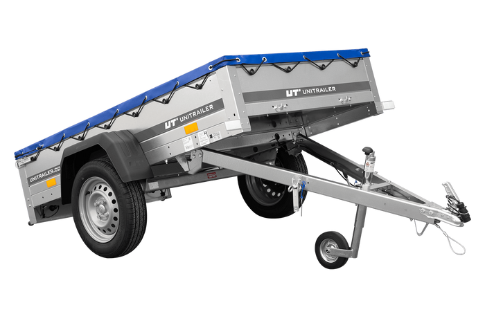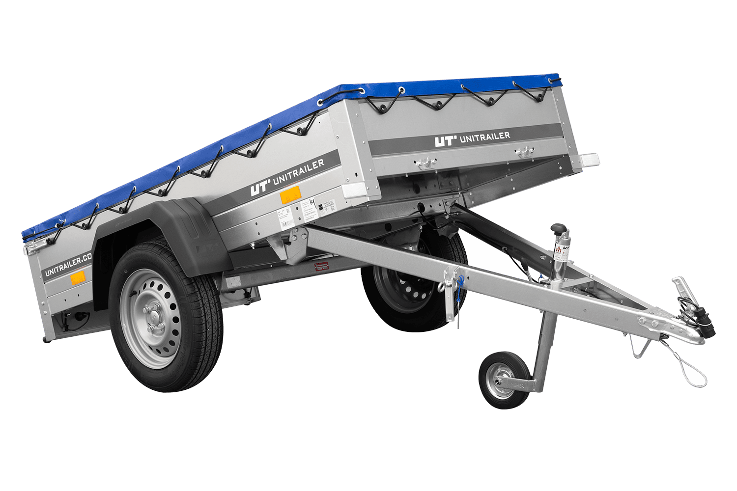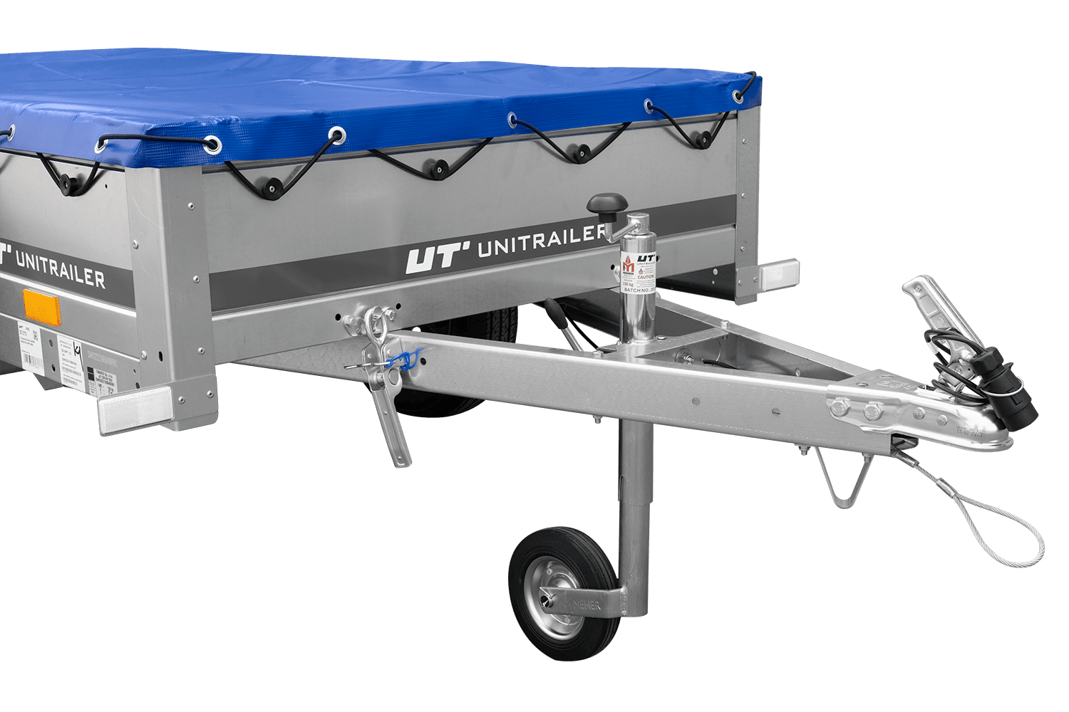 - PODVOZEK - torzní náprava od renomovaného výrobce ALKO nebo Knott - zakázková výroba pro Unitrailer. Rozměr kol: 155/70 R13. Sklopná oj typu "V", kterou lze kdykoli sklopit pod přívěs.