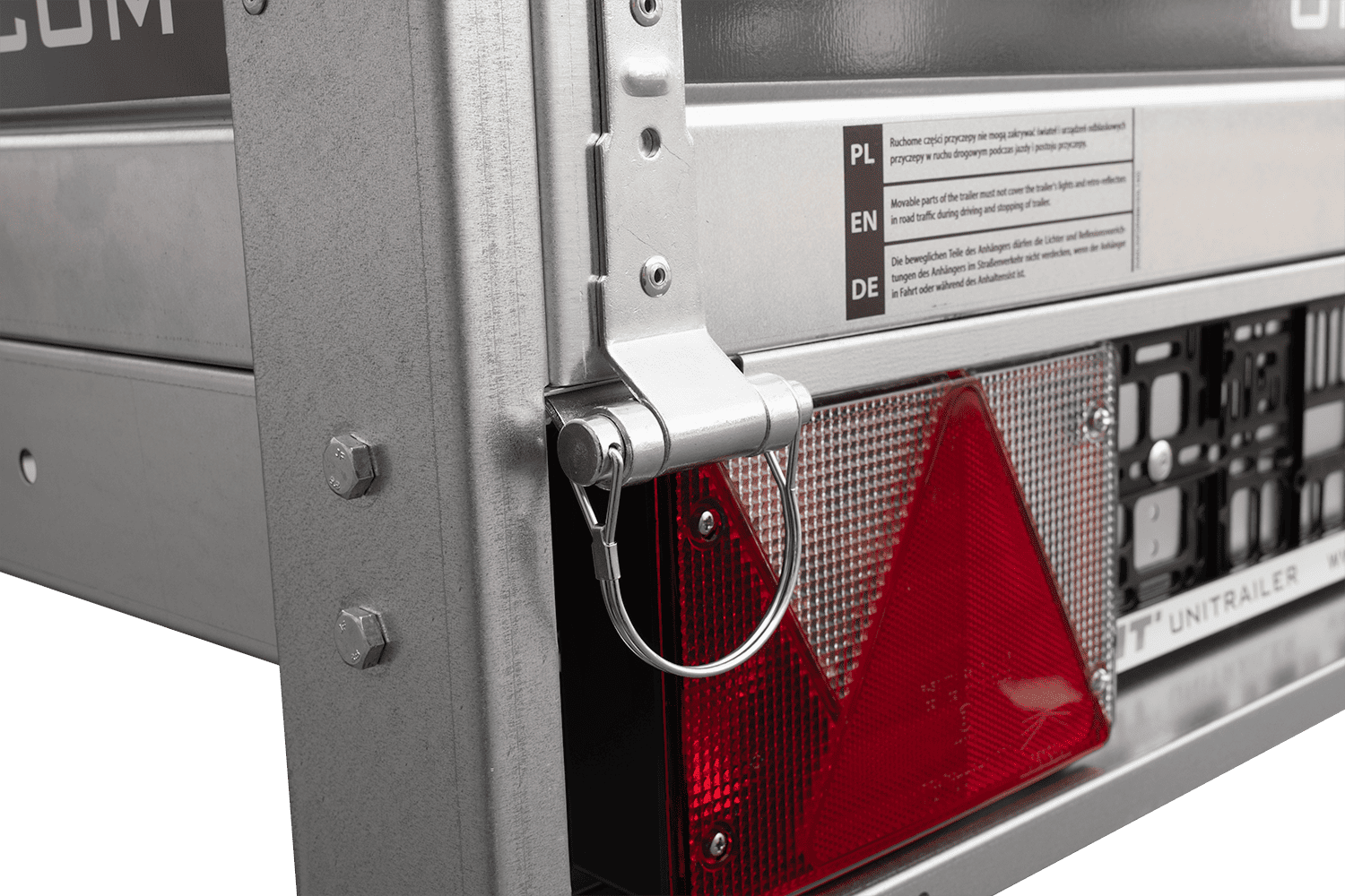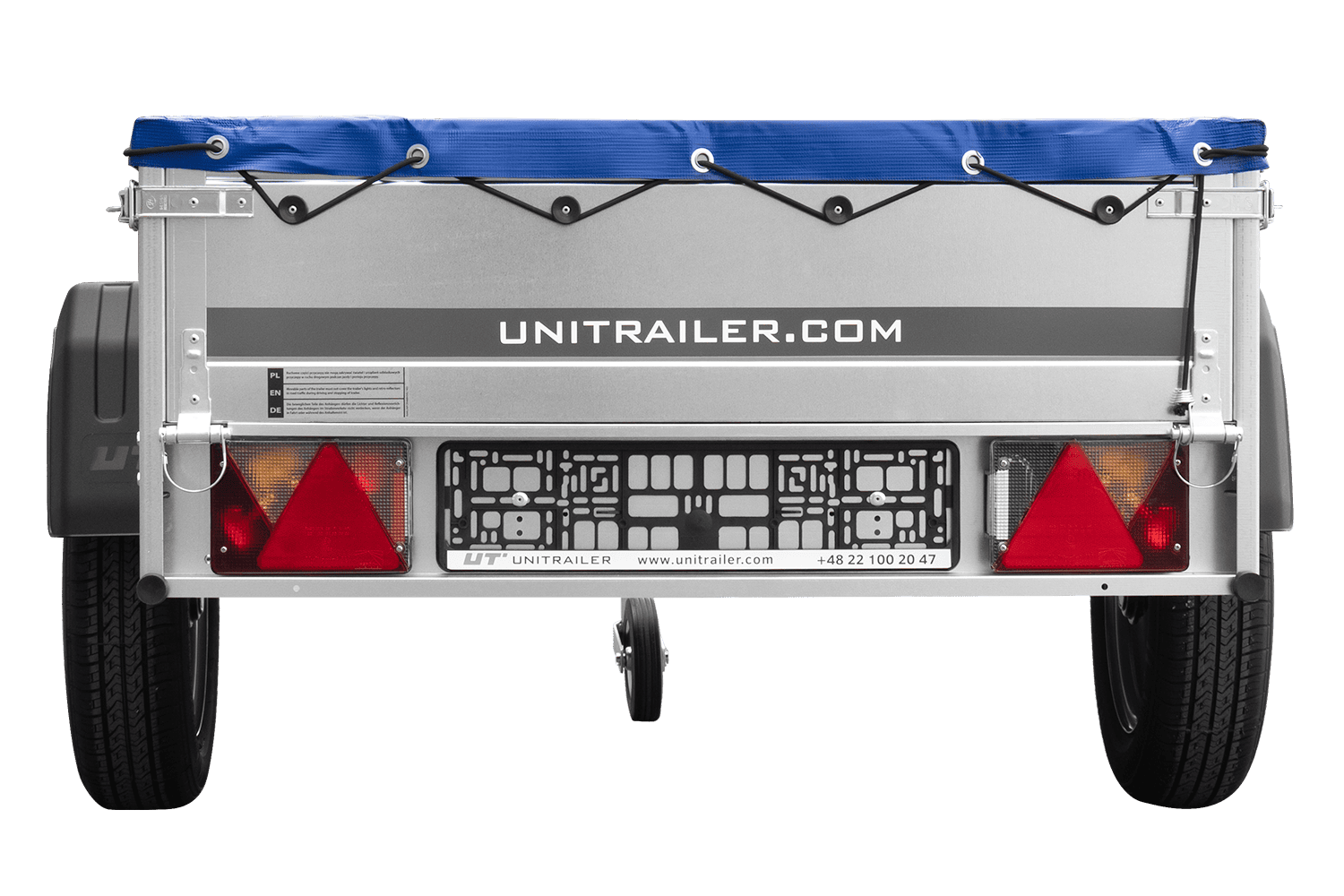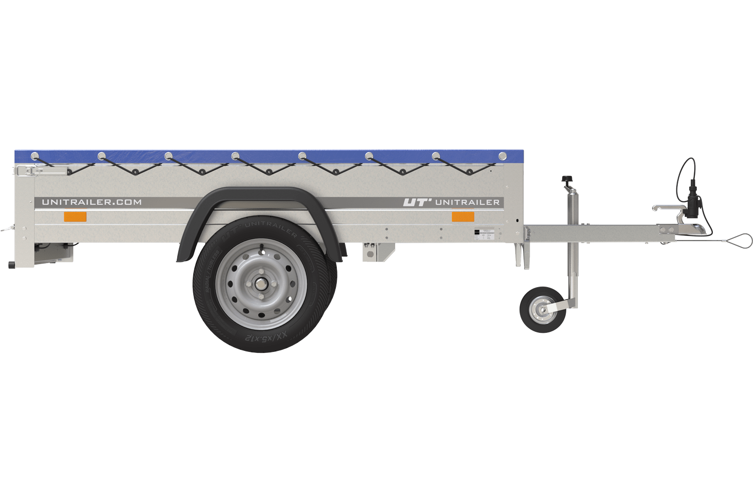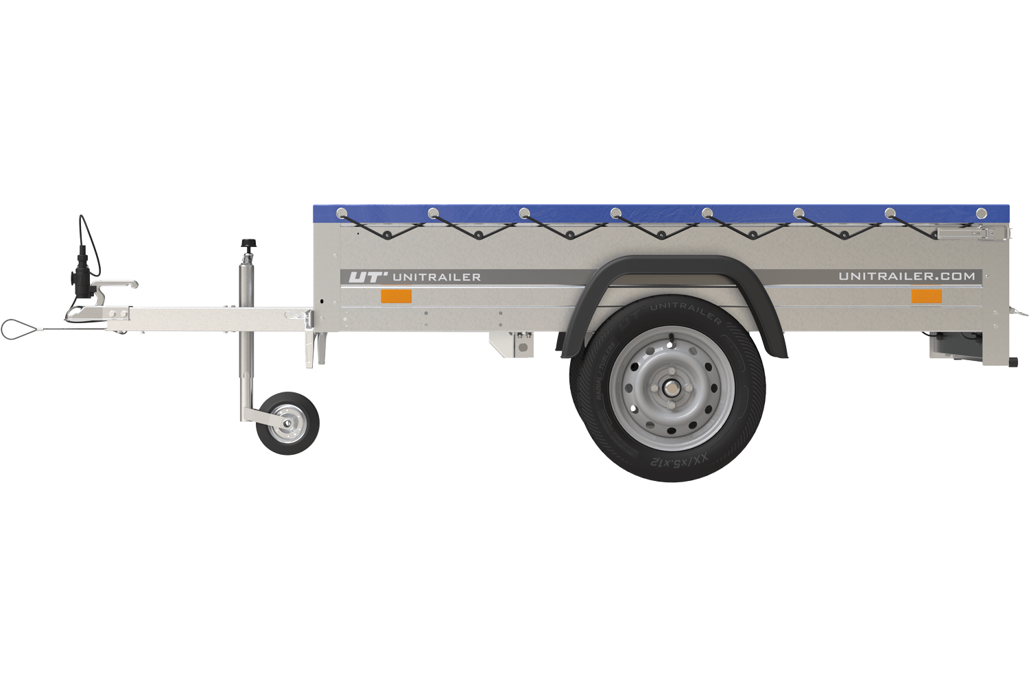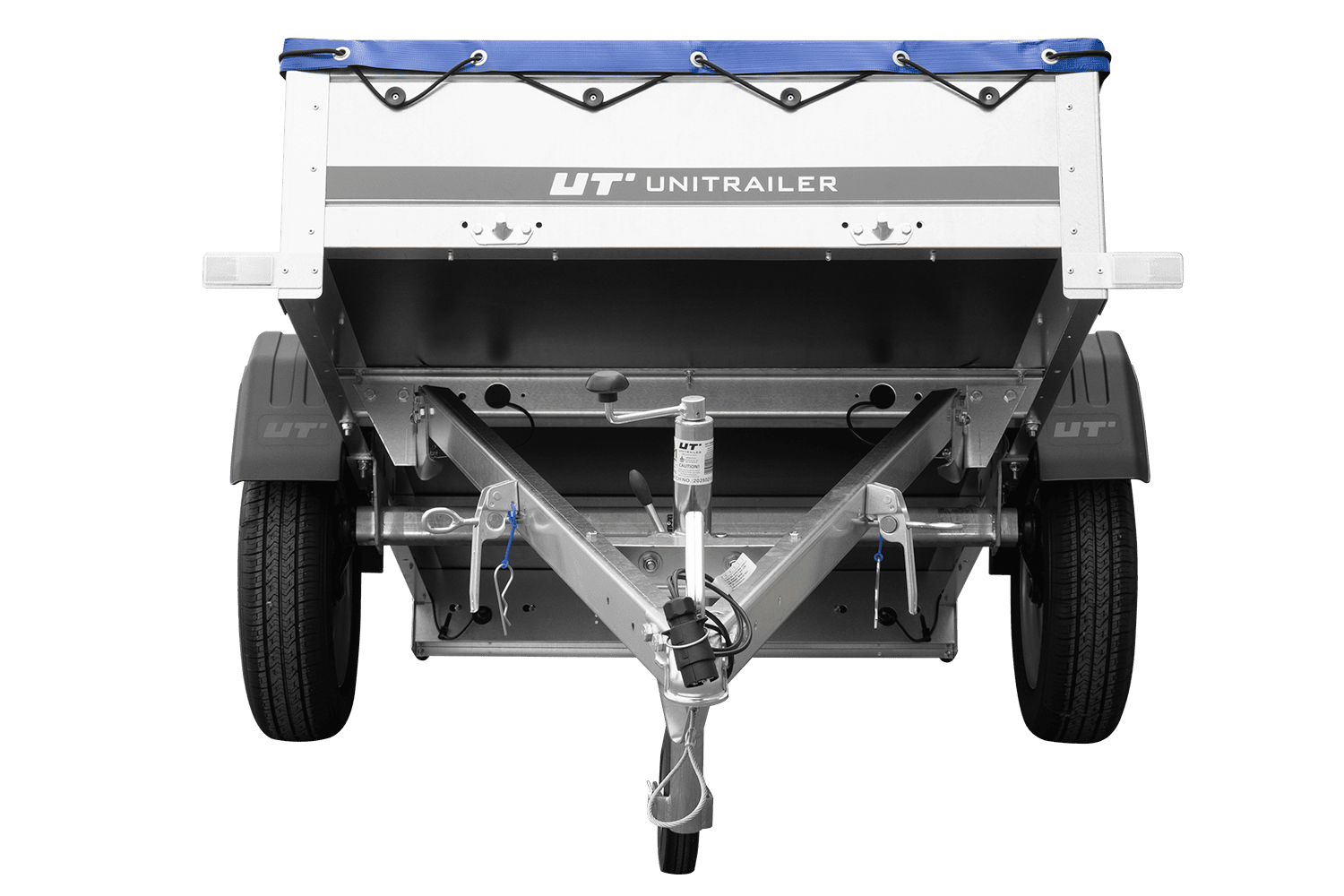 - PODVOZEK - torzní náprava od renomovaného výrobce ALKO nebo Knott - zakázková výroba pro Unitrailer. Rozměr kol: 155/70 R13. Sklopná oj typu "V", kterou lze kdykoli sklopit pod přívěs.