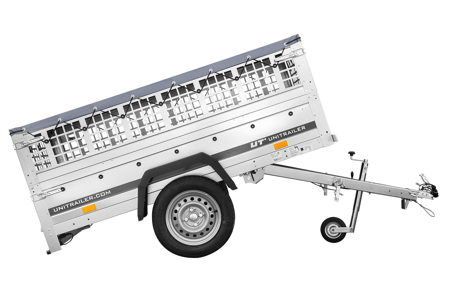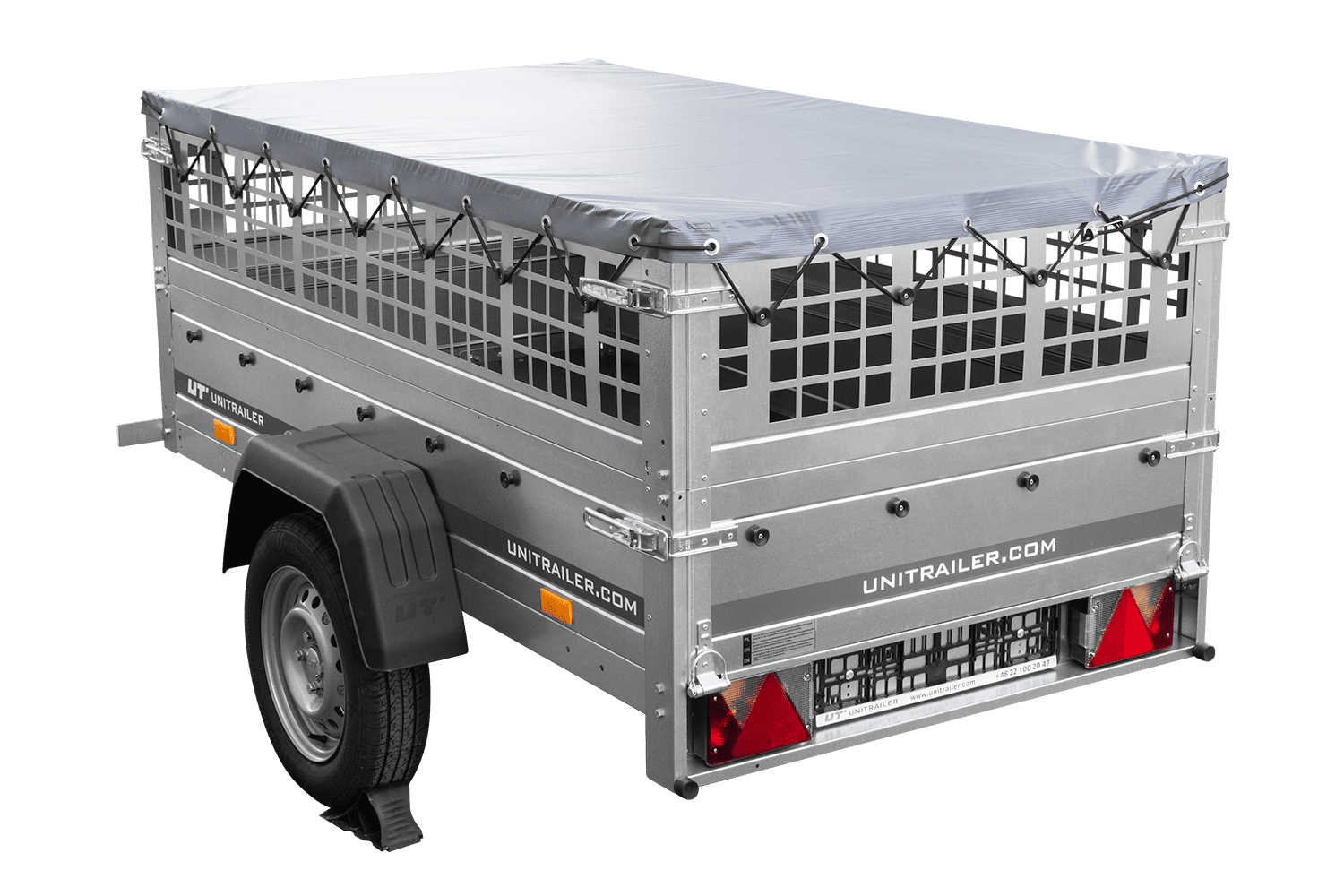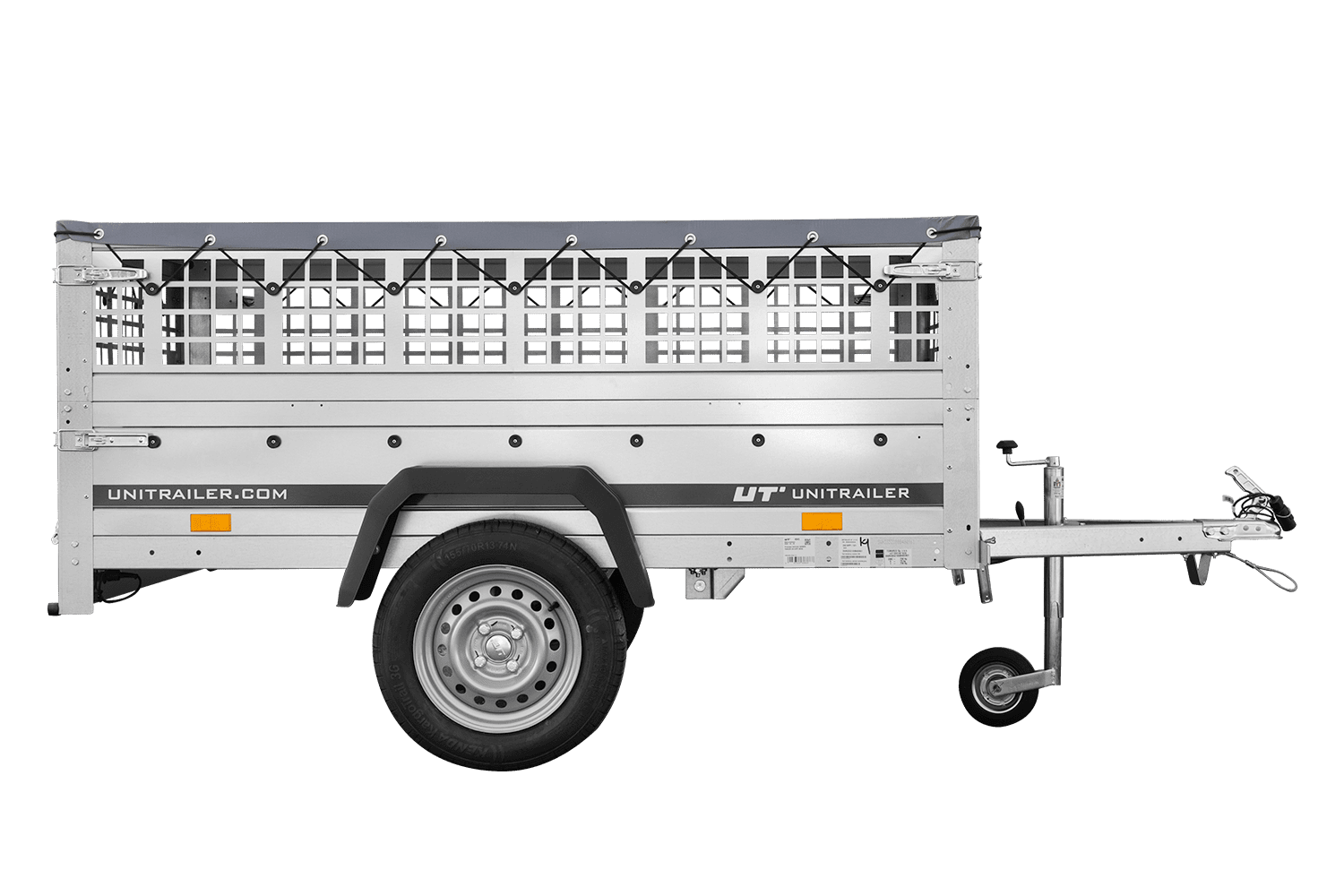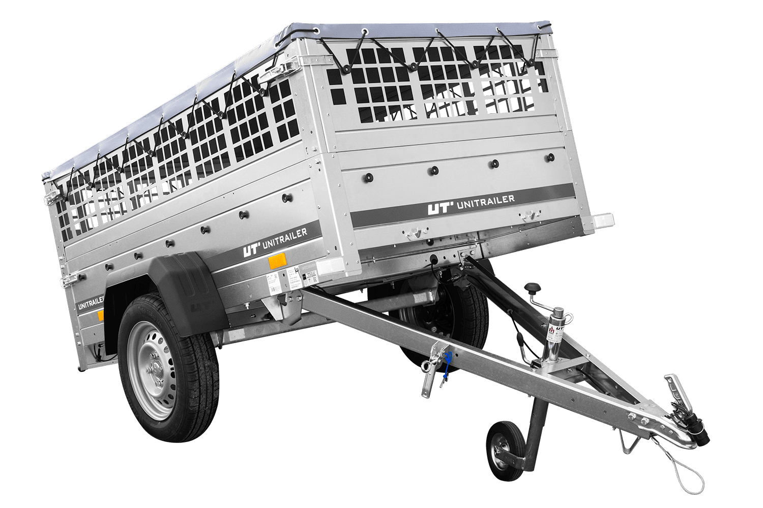 Jednonápravový přívěs Unitrailer GARDEN TRAILER 200 KIPP v sadě s opěrným kolečkem, síťovanými bočnicemi a plochou plachtou