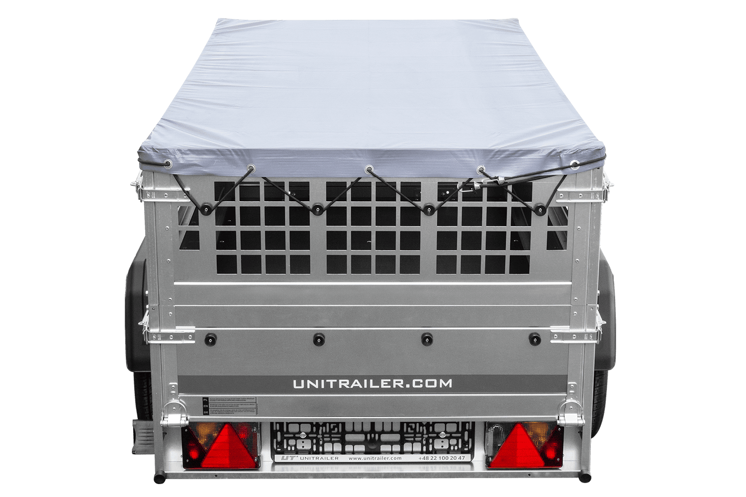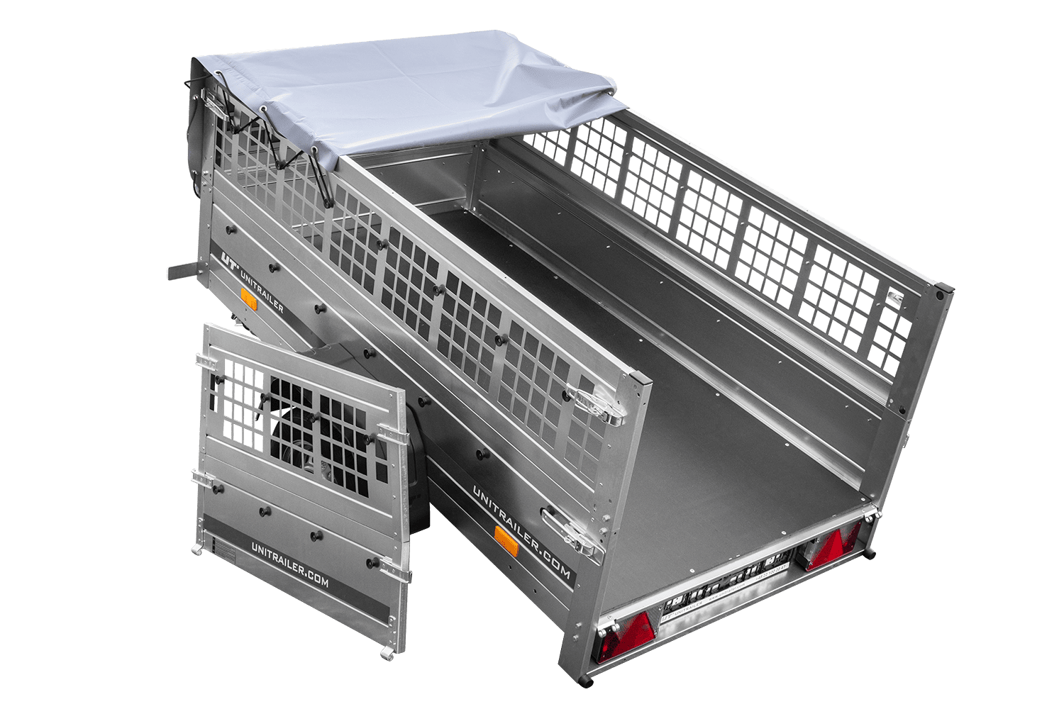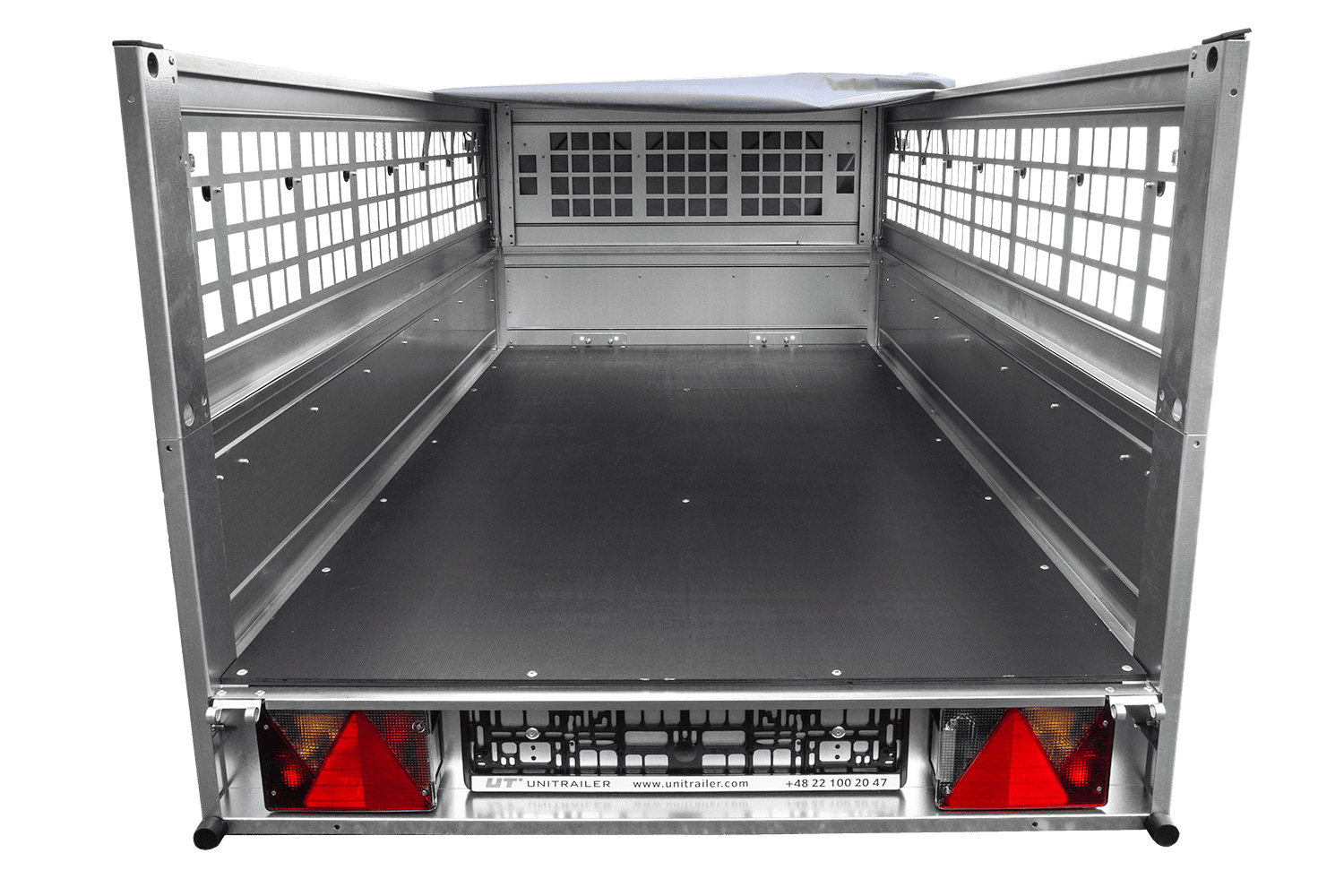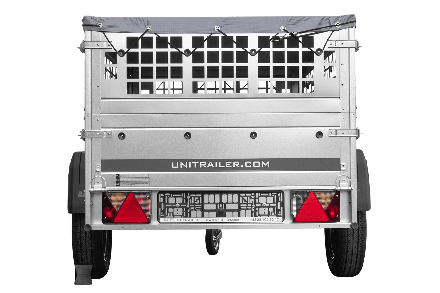 Jednonápravový přívěs Unitrailer GARDEN TRAILER 200 KIPP v sadě s opěrným kolečkem, síťovanými bočnicemi a plochou plachtou