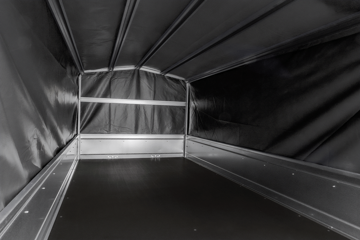 - BOČNICE - celková výška 30 cm z odolného ocelového pozinkovaného plechu chráněného proti korozi. Vícenásobné ohyby pro větší tuhost. S držáky pro plachtové lano, které umožňuje správné napnutí plachty. Zadní čelo lze otevřít s možností kompletní demontáže.