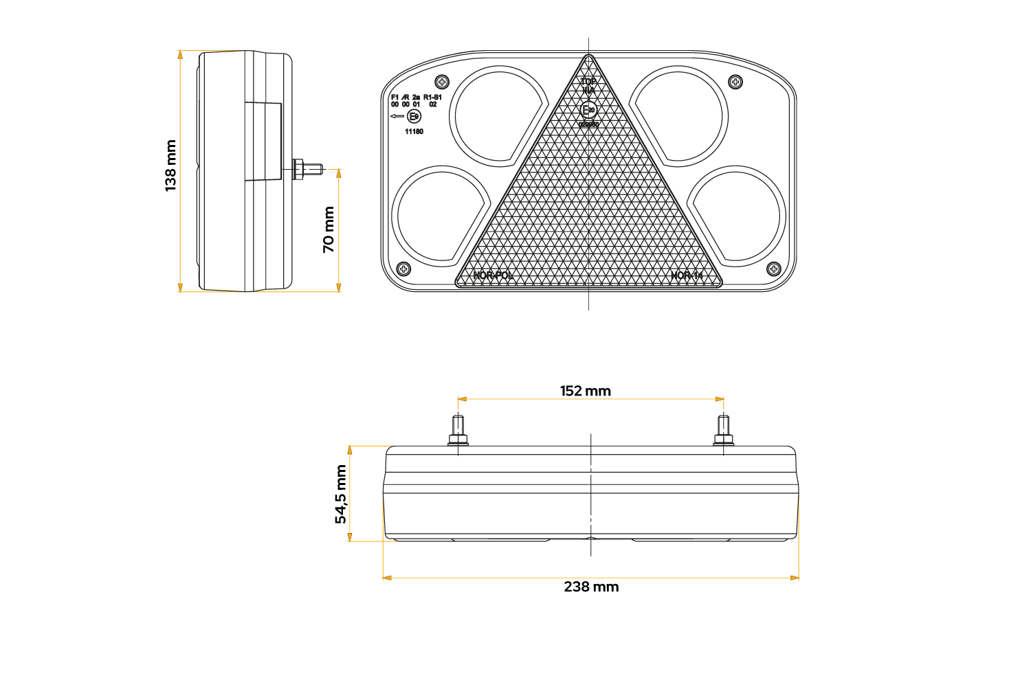 - LZD 844 LED HORPOL zadní světlo pro montáž na pravou stranu. Má šest funkcí: obrysové světlo, brzdové světlo, mlhové světlo, couvací světlo, směrové světlo a odrazka. Ideální pro použití v přívěsech a nákladních vozidlech.
