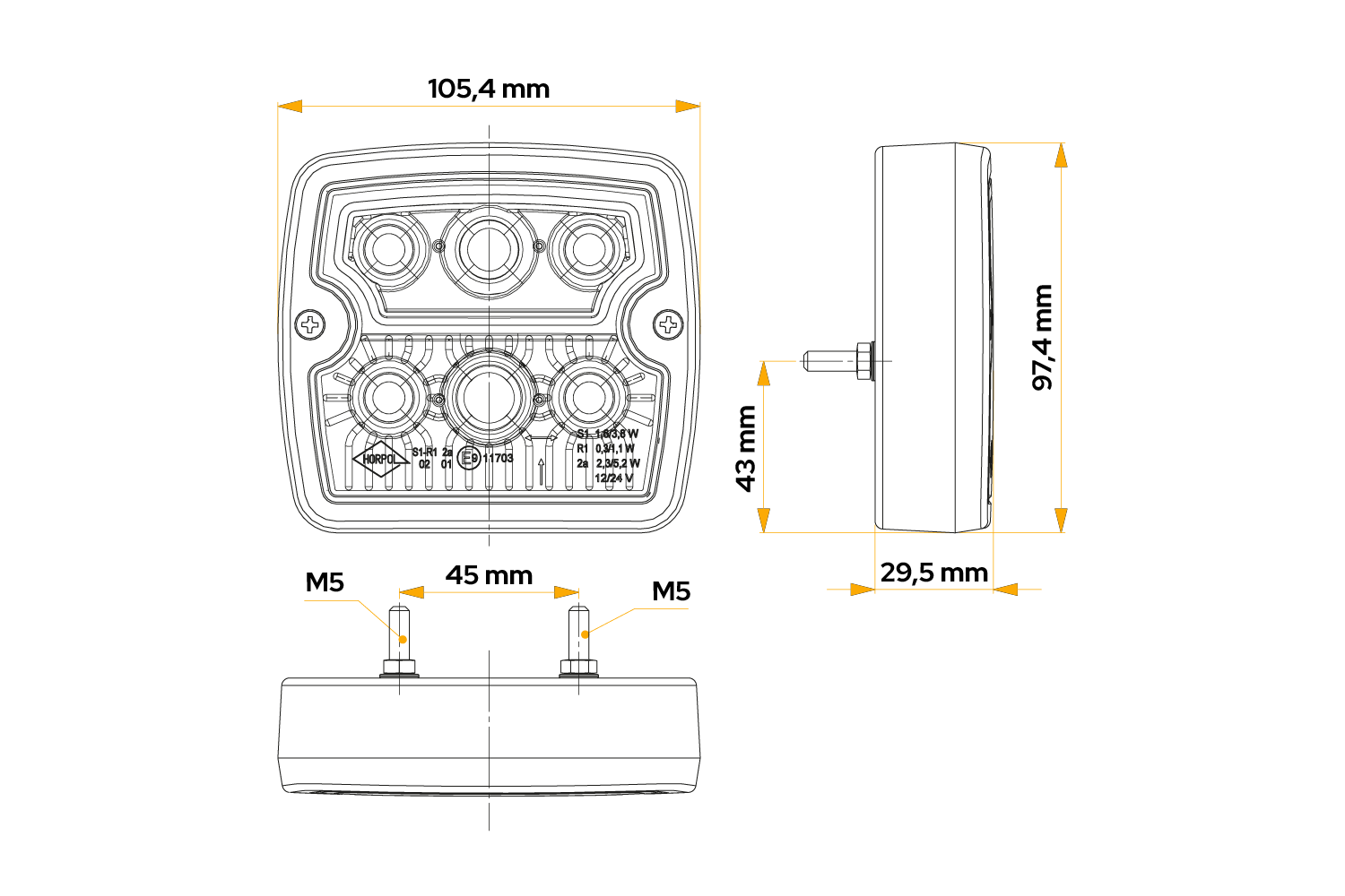 - Zadní světlo LZD 967 LED HORPOL pro montáž na levou nebo pravou stranu. Má tři funkce: obrysové světlo, brzdové světlo a blinkr. Ideální pro použití v přívěsech a nákladních vozidlech.