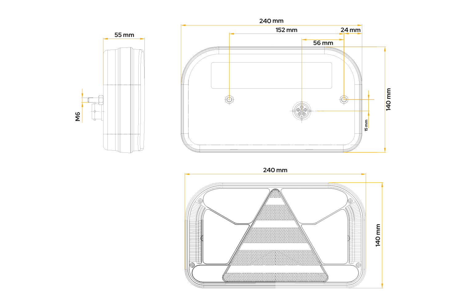 Zadní světlo FT-170 LED od FRISTOM, určené pro montáž na levou stranu vozidla , má tyto rozměry: šířka 240 mm, výška 140 mm, hloubka 55 mm . Je navržen pro provoz v rozsahu napětí 12–36 V , lze jej použít v přívěsech, nákladních automobilech a odtahových vozech, což podtrhuje jeho univerzálnost . Je vybavena 5pinovým bajonetovým konektorem , což umožňuje snadnou a rychlou instalaci. Díky použití LED technologie poskytuje svítilna vysoký výkon, odolnost a energetickou účinnost, což zajišťuje bezpečnost v různých silničních podmínkách. Konstrukce svítilny je odolná proti nárazům a mechanickému poškození a má také elektrickou ochranu proti přepólování, což navíc zvyšuje její spolehlivost v náročných provozních podmínkách.