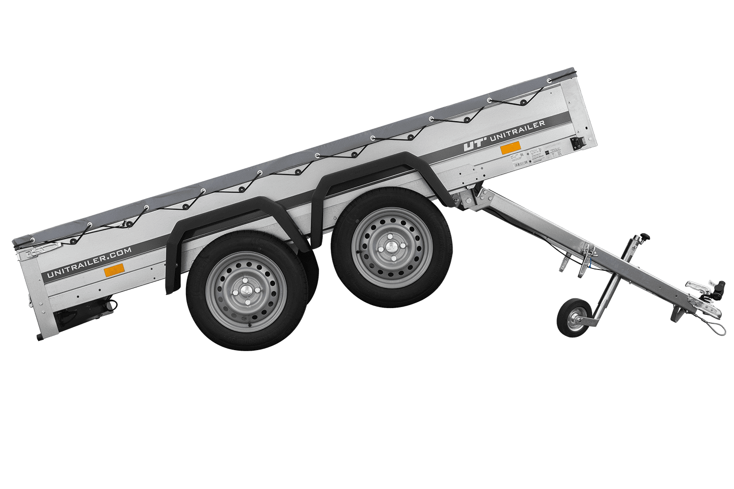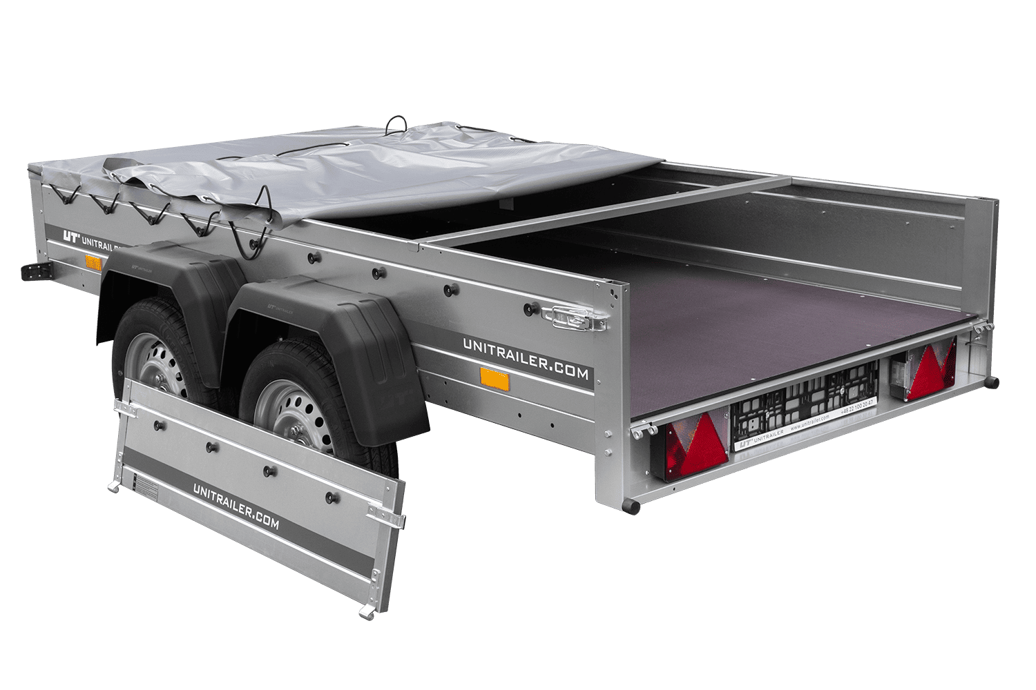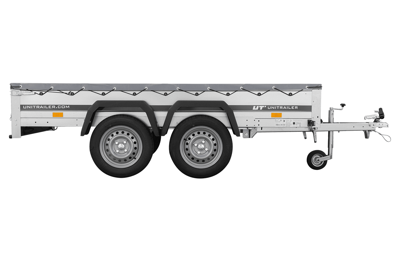 Dvounápravový přívěs Unitrailer 264/2 v sadě s plachtou a plochým rámem H-0