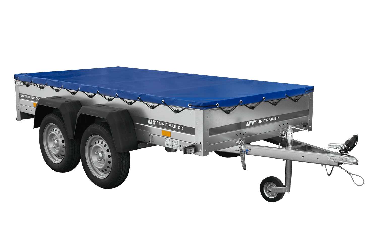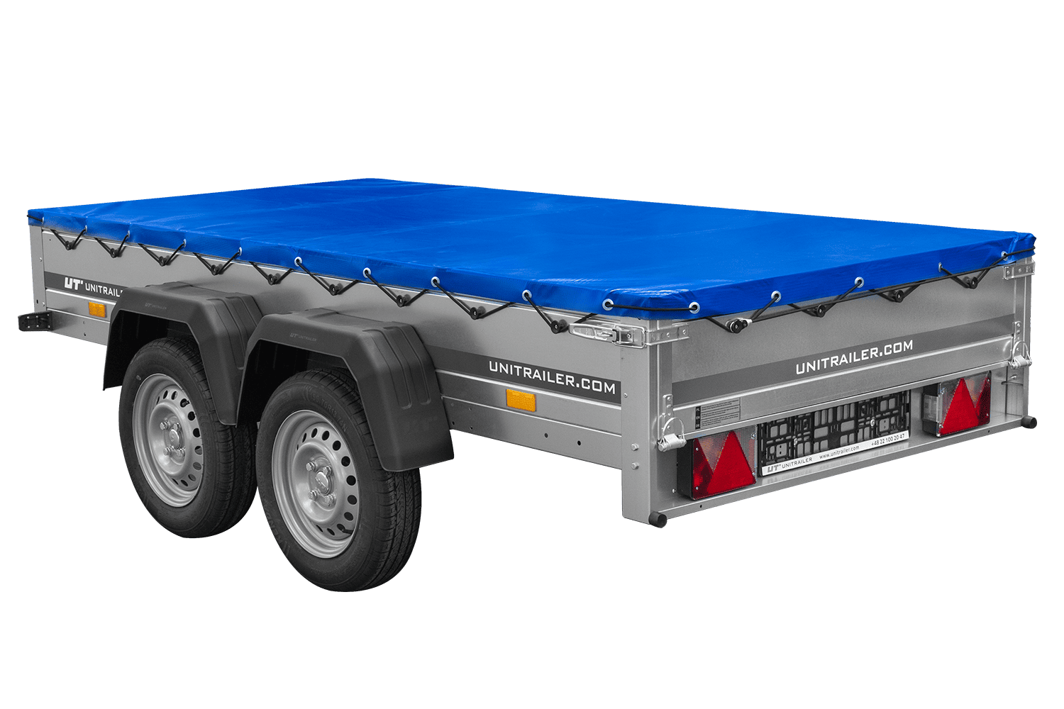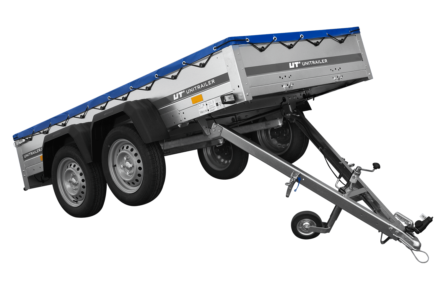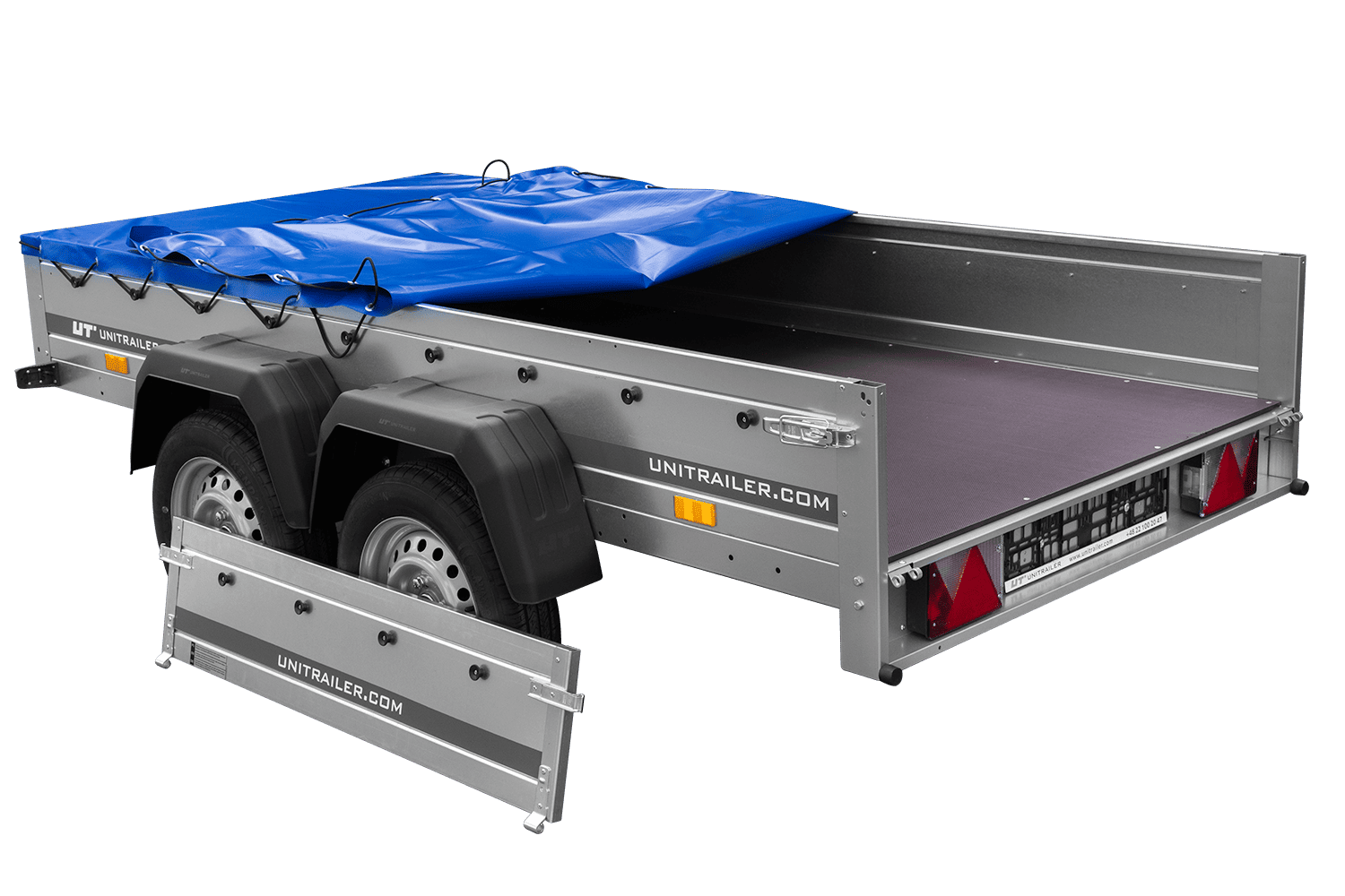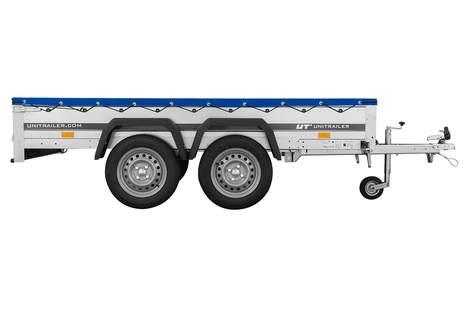 Dvounápravový přívěs Unitrailer 264/2 v sadě s plachtou a plochým rámem H-0