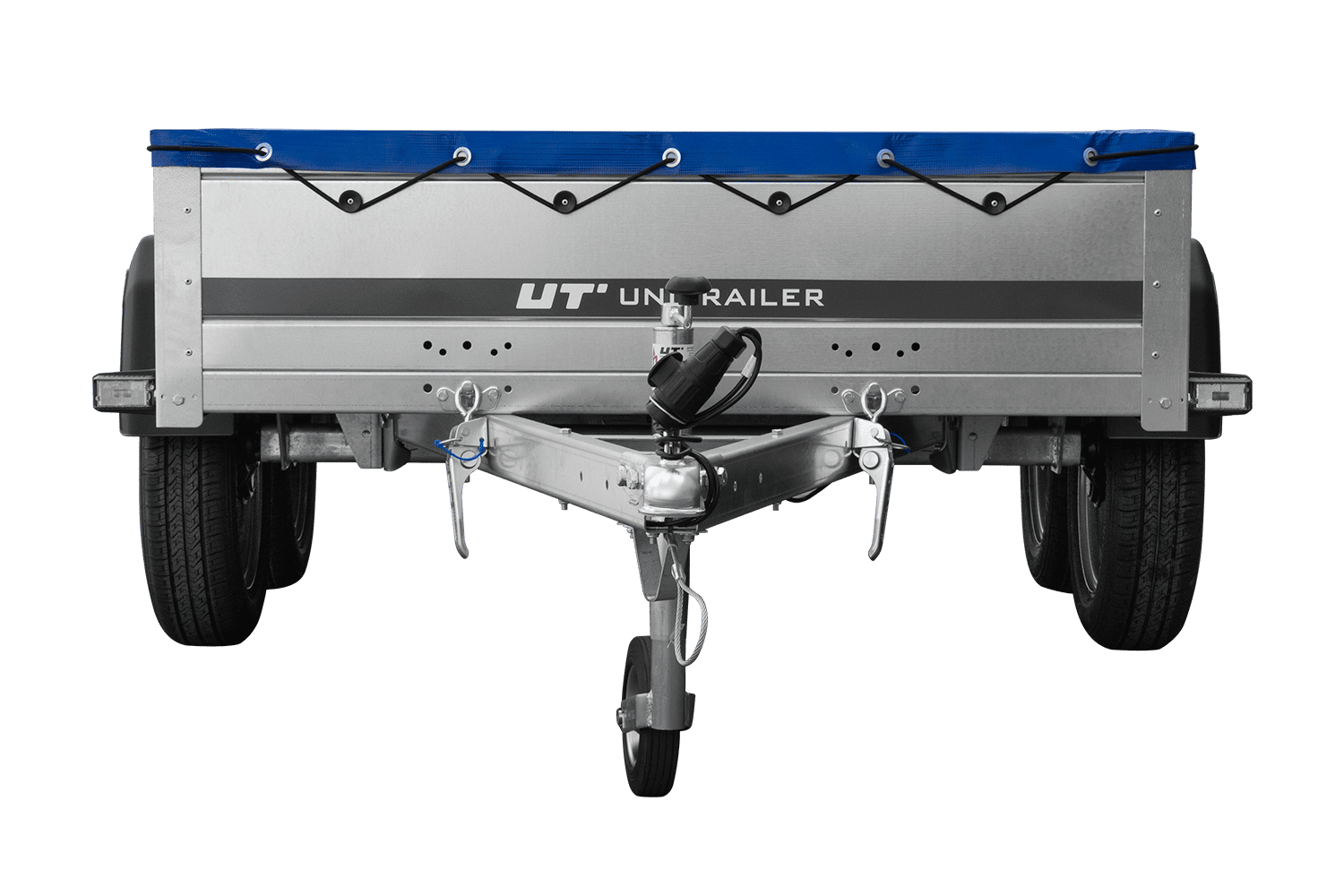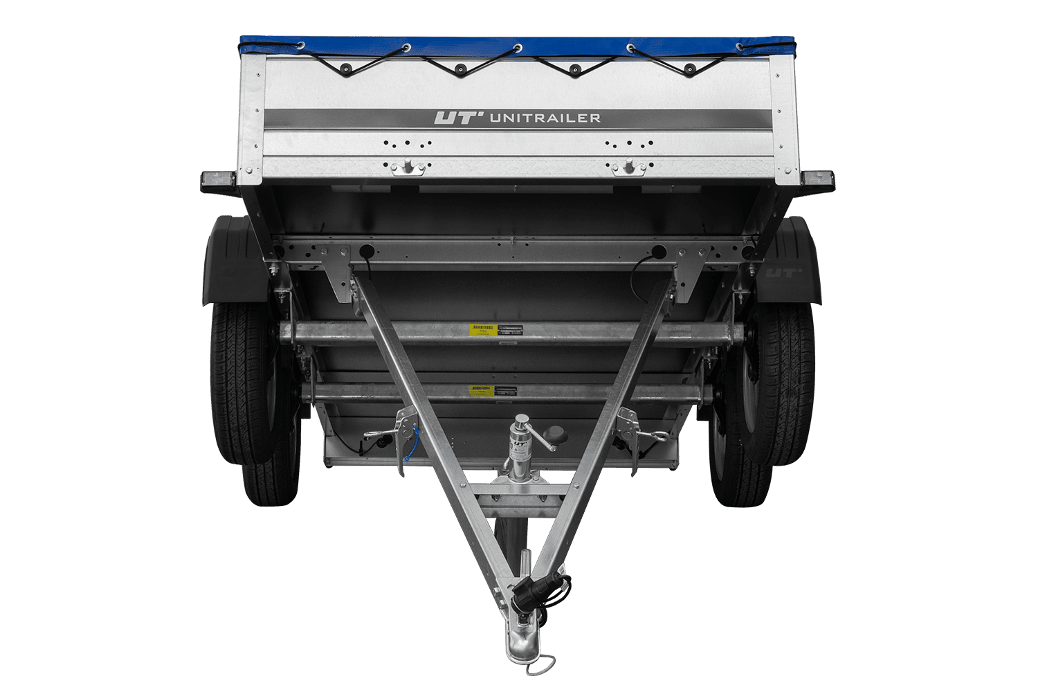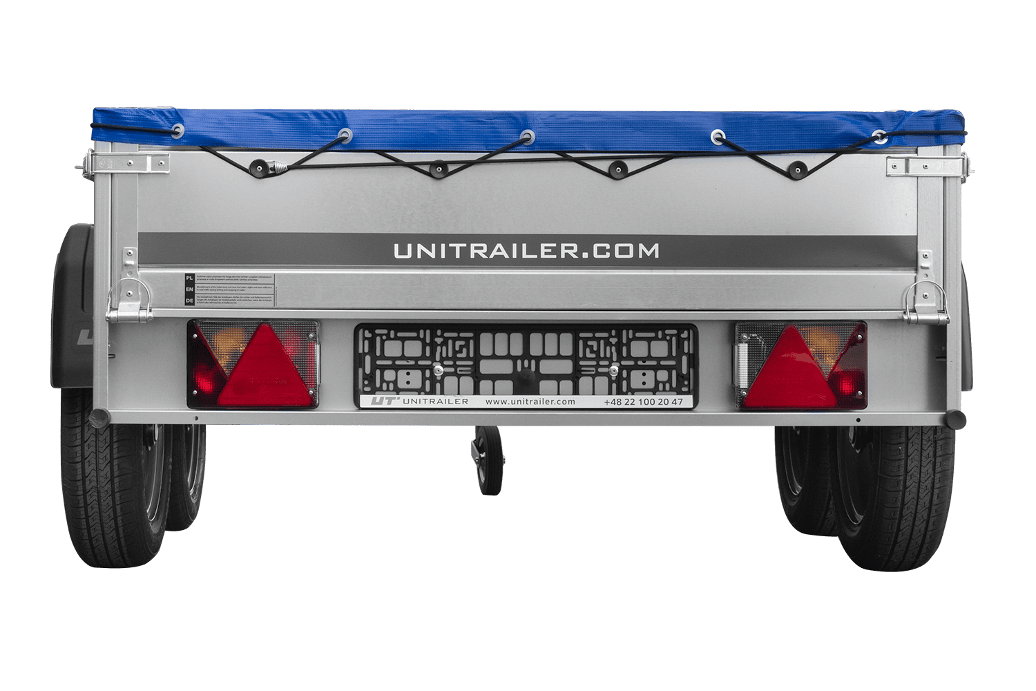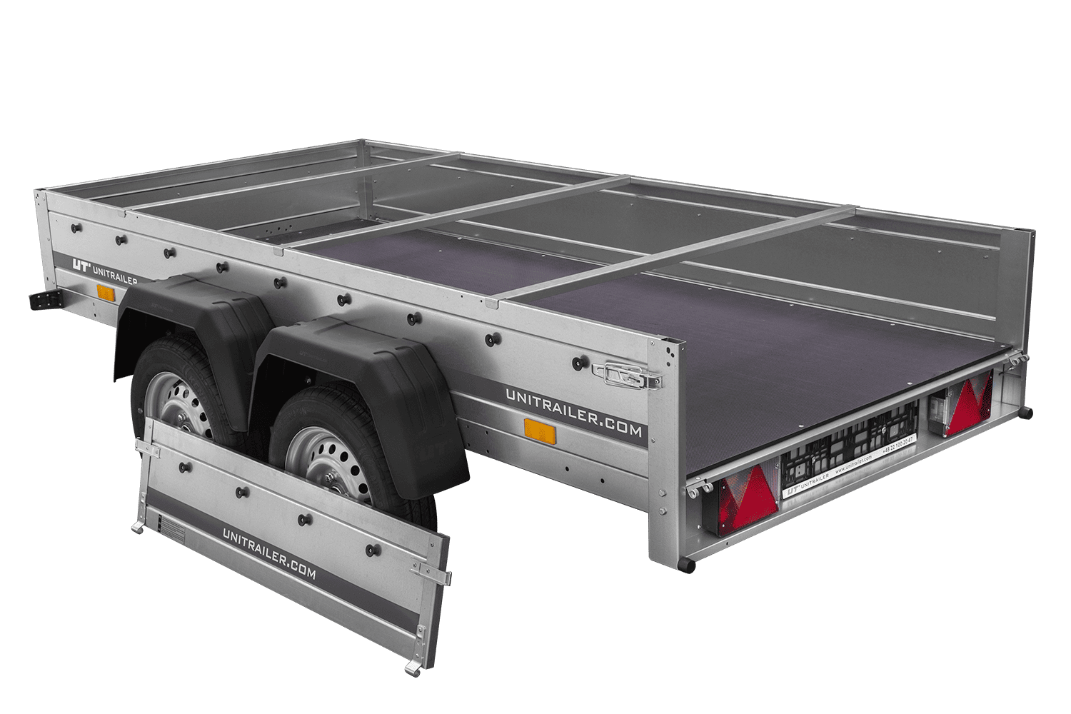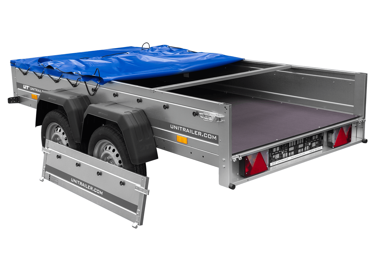 Dvounápravový přívěs Unitrailer 264/2 v sadě s plachtou a plochým rámem H-0