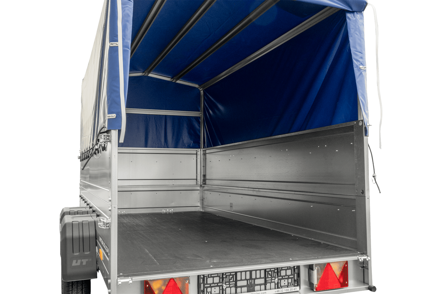 • BOČNICE - celková výška 30 cm z odolné pozinkované oceli, chráněné proti korozi. Vícenásobně ohnuté pro větší tuhost. S držáky na plachtové lano umožňující správné natažení plachty. Zadní čelo lze otevřít a zcela rozložit.