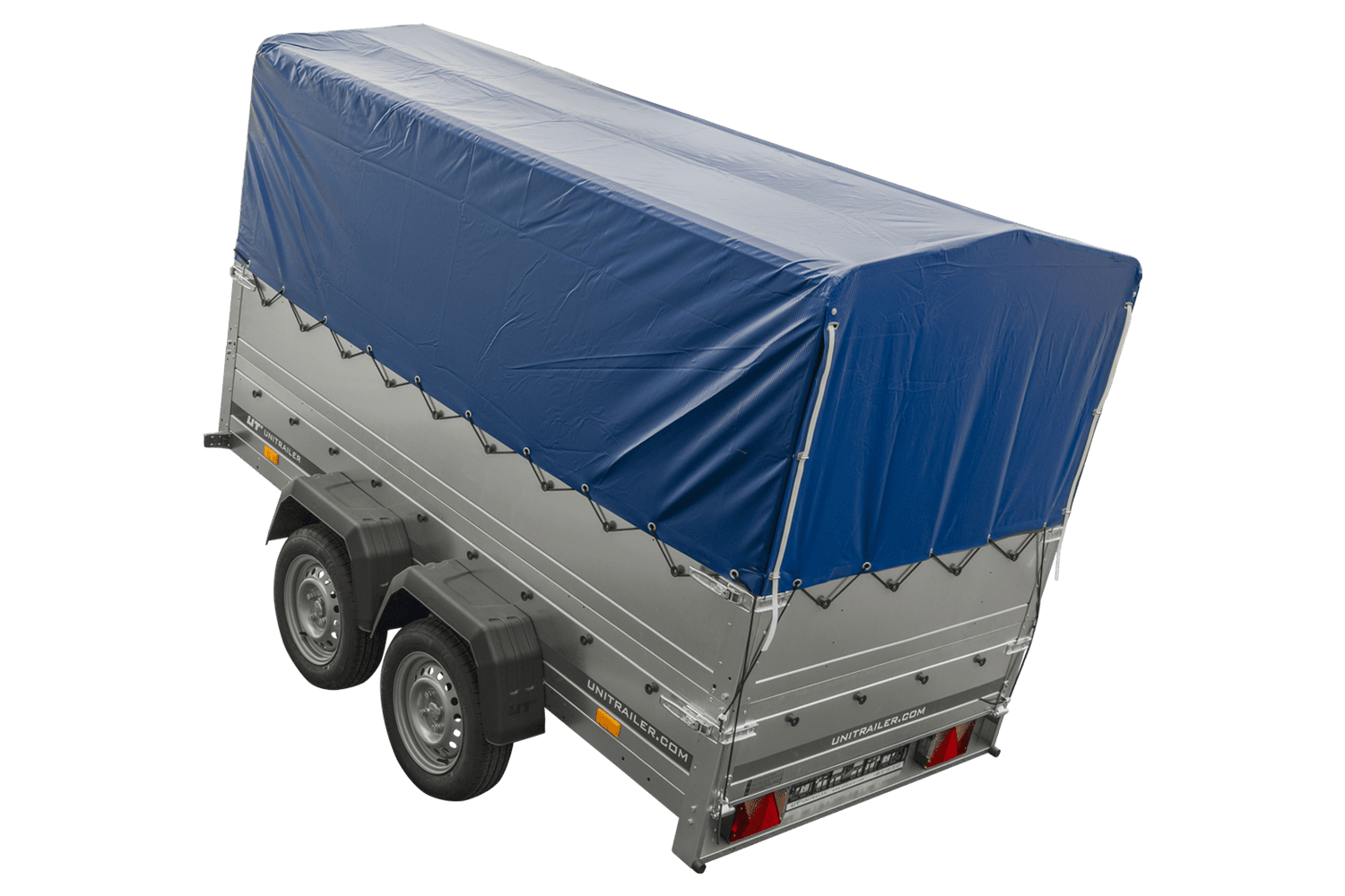 Přívěs Garden Trailer 264/2 KIPP s BIS bočnicemi, rámem H-800 a modrou plachtou