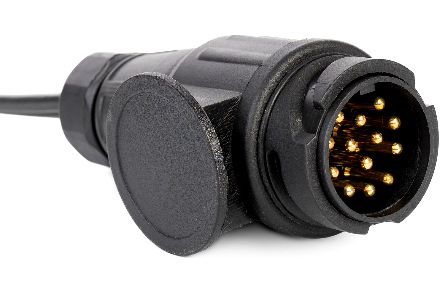 Kabeláž je vybavena dvěma 5pinovými bajonetovými konektory pro připojení zadních světel. Bajonetový systém zajišťuje rychlou a bezpečnou instalaci a eliminuje riziko náhodného odpojení během jízdy. Konstrukce konektoru zaručuje vodotěsné spojení a chrání kontakty před korozí, čímž zajišťuje dlouhodobý a bezproblémový provoz celého systému osvětlení přívěsu.