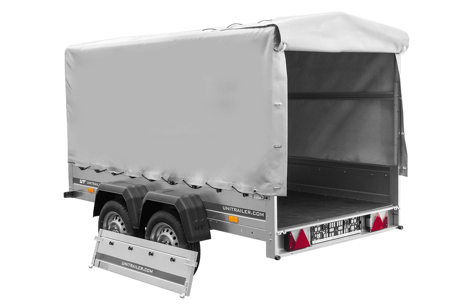 - Přívěs Garden Trailer 264/2 KIPP s opěrným kolečkem, rámem H-1100 a šedou plachtou je jednonápravový přívěs s CPH 750 kg. Pro usnadnění nakládání a vykládání lze zadní čelo otevřít anebo demontovat.